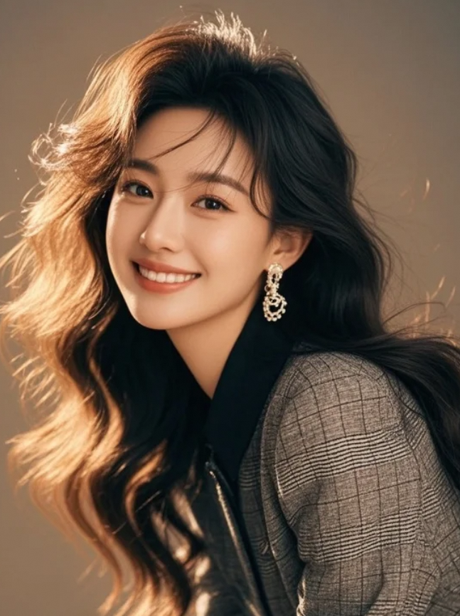 优雅长卷发小姐姐歪头微笑,温馨氛围满溢!