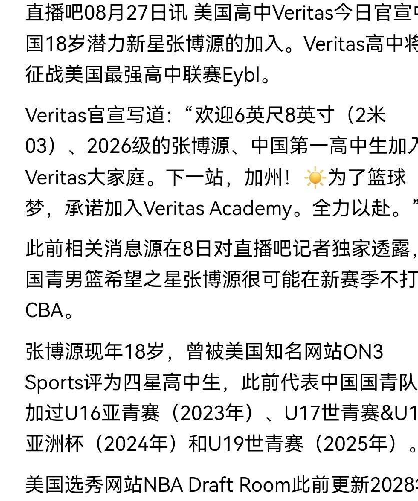 张博源 为我们的旅美球员,再添一砖一瓦! 中国男篮国家队,再添一员虎将 不得不说: 一,外出的球员,为国家队准备好一组球员: 杨瀚森、曾凡博、崔永熙、朱正、赵维伦、王俊杰、淡厚然!郇斯楠兄弟、余嘉豪 二,不知道郭昊文、林威未来会怎么样 但是,只希望他们好好的 就目前来看,国内俱乐部的顶薪球员,要加油了 #张博源#