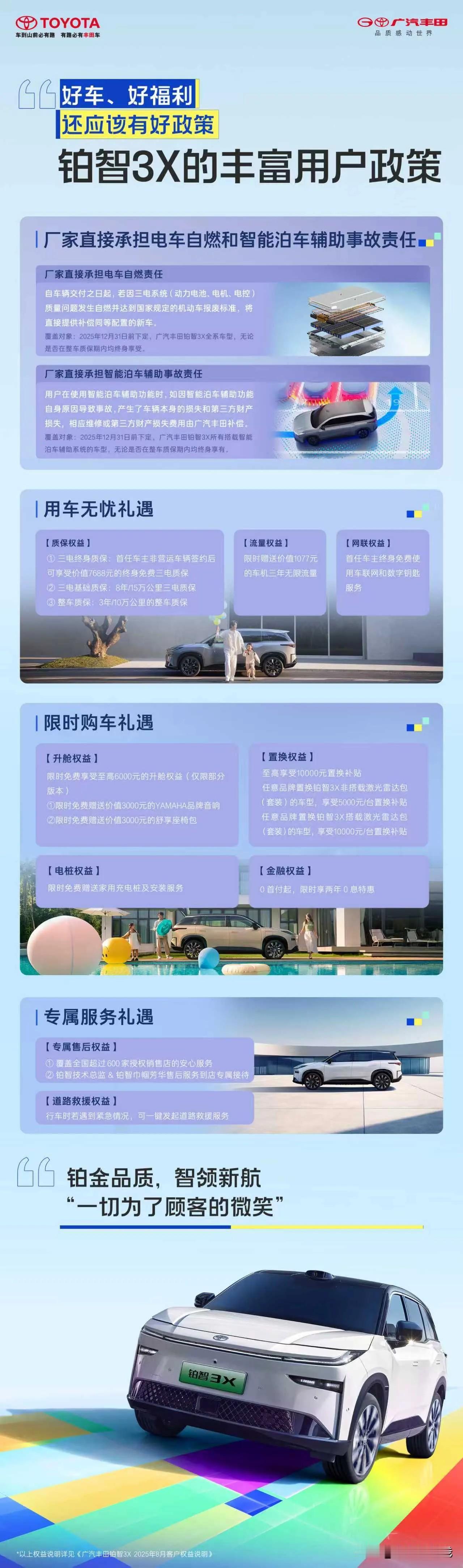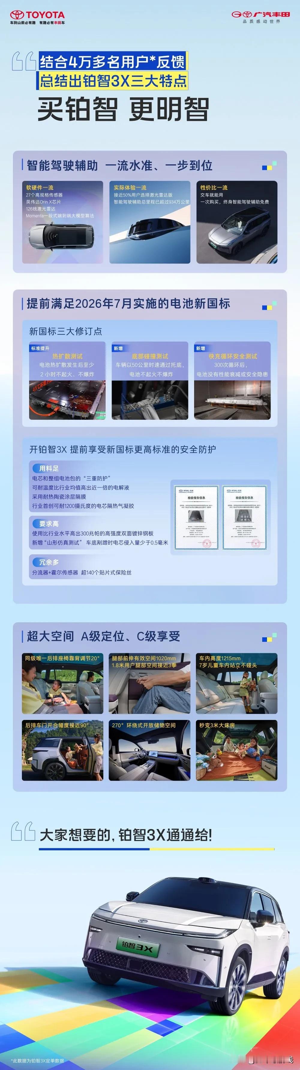 告别“单向宣传”!广汽丰田21年来首开用户大会 21年了!广汽丰田终于开了第一个用户大会!8月27日铂智3X用户大会,不只是一场活动,更是品牌的“战略升级”——从“单向传播”变成“双向共创”。 以前车企说啥用户听啥,现在广汽丰田反过来,用户需求直接决定研发方向:AEB功能优化、AI大模型上车,都是用户痛点催出来的。而且安全上更实在,“自燃+辅助泊车事故厂家担责”,终身保障新老同享;体验上有大规模OTA升级,福利上有1000份礼品和铂智7使用权。不再是“车企说,用户看”,而是用户参与共创,这才是新能源时代该有的沟通方式!铂智3X首次用户大会 铂智3X首推自燃和辅助泊车事故厂家担责 铂智7成为华为小米双生态第一车 铂智3X最大规模OTA将上线