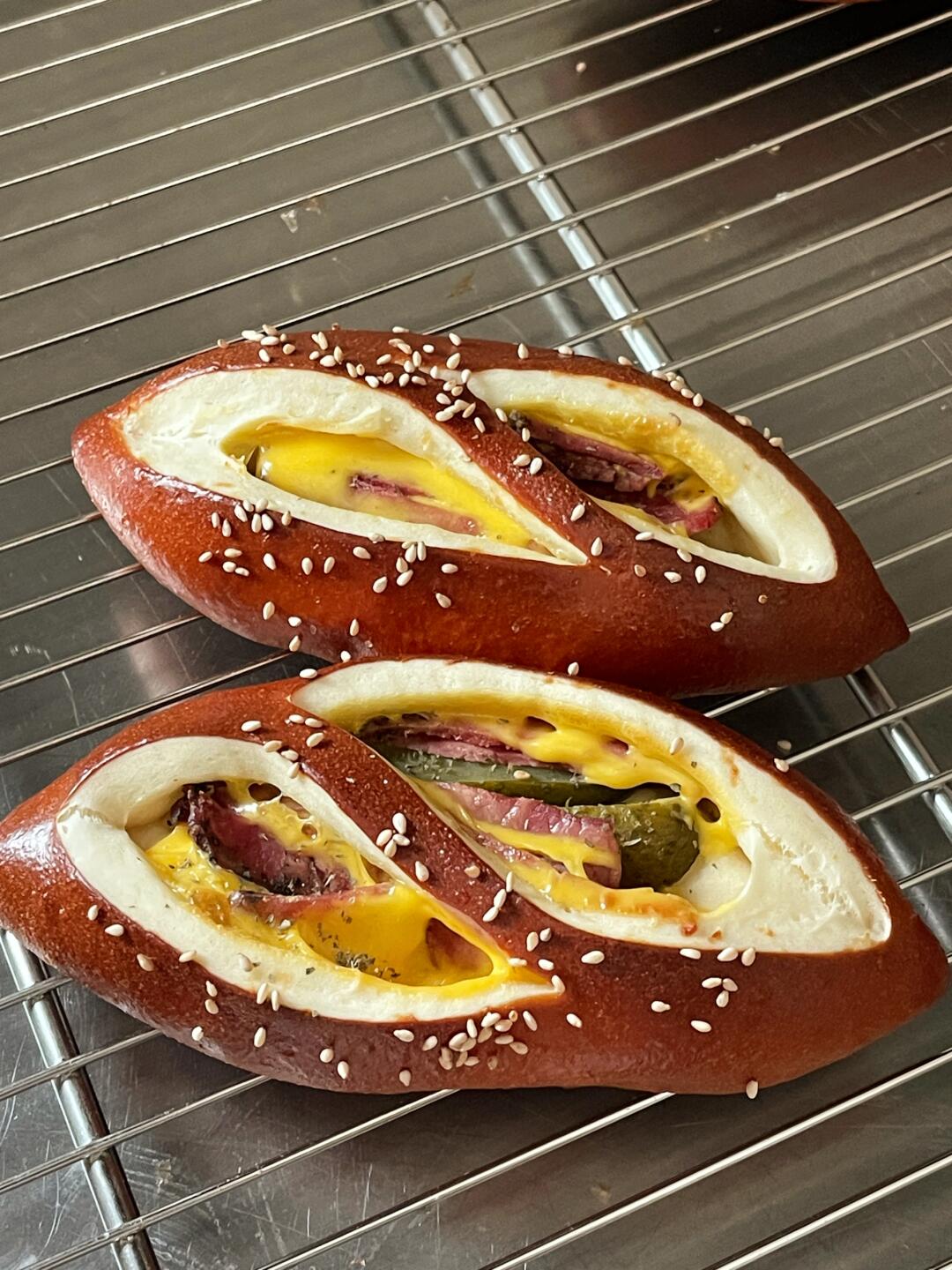 帕斯雀牛肉酸黄瓜芝士碱水🥩咸口面包太绝