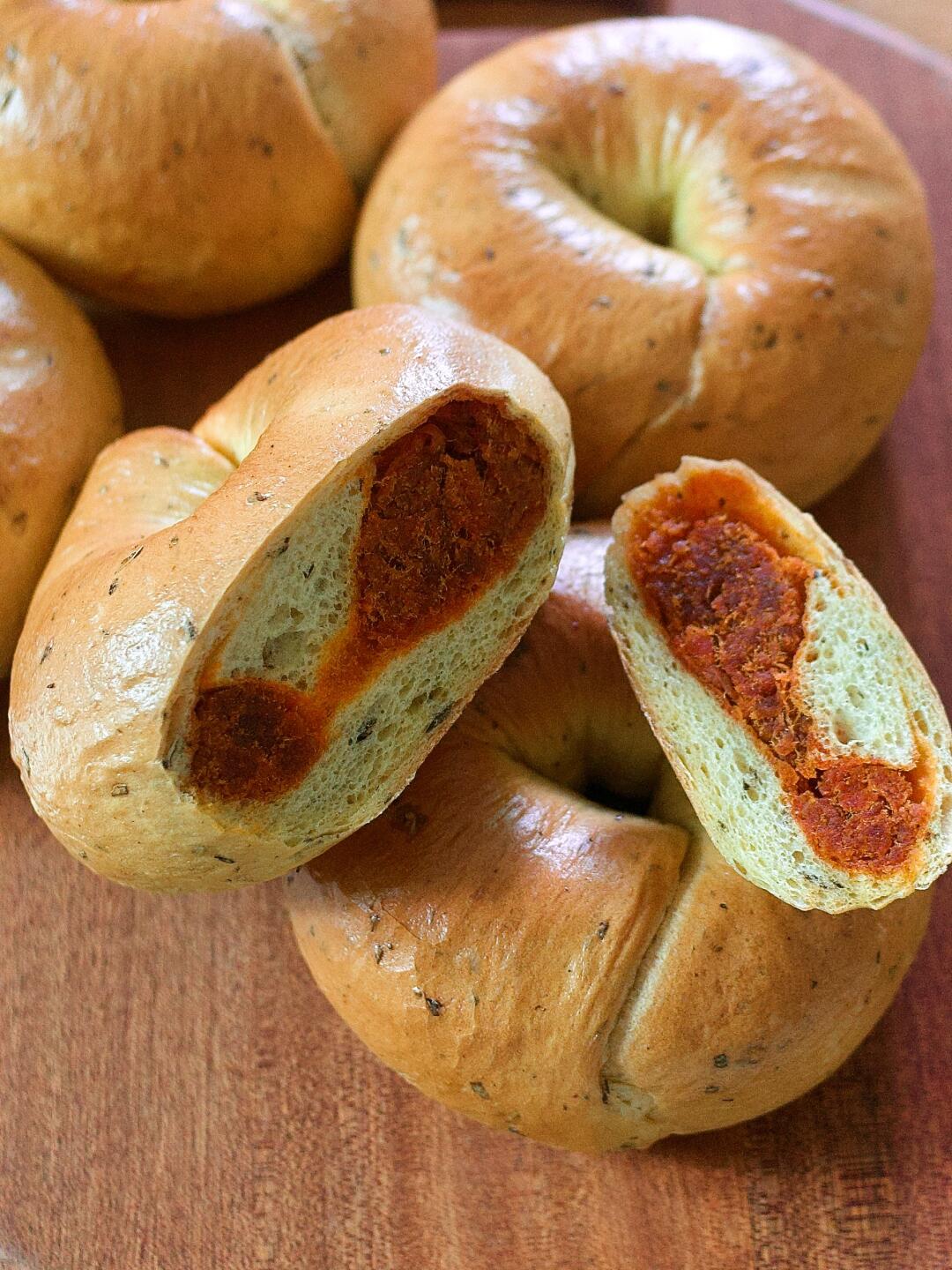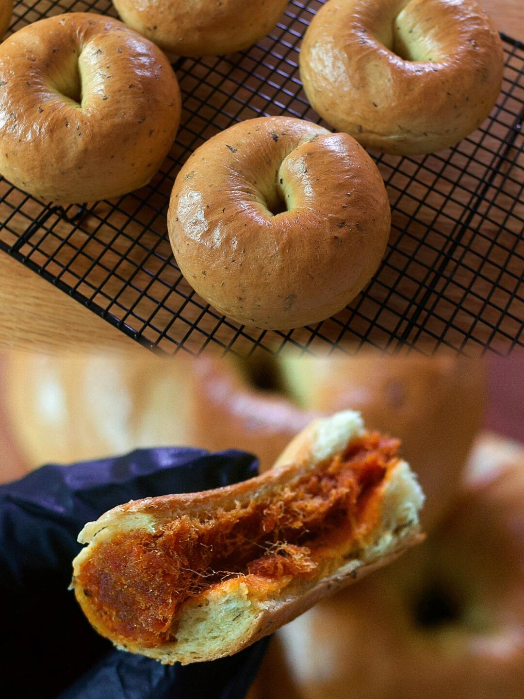 辣咖喱罗勒肉松贝果🥯香料风味十足的面包