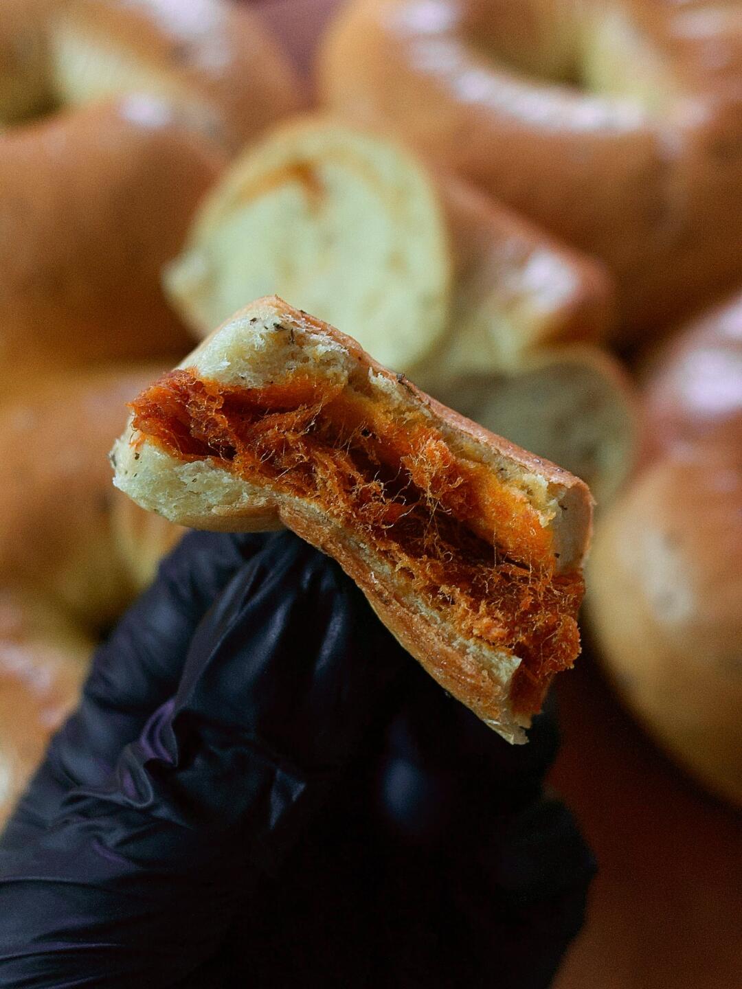 内馅儿的辣肉松也有咖喱混合,里外呼应!