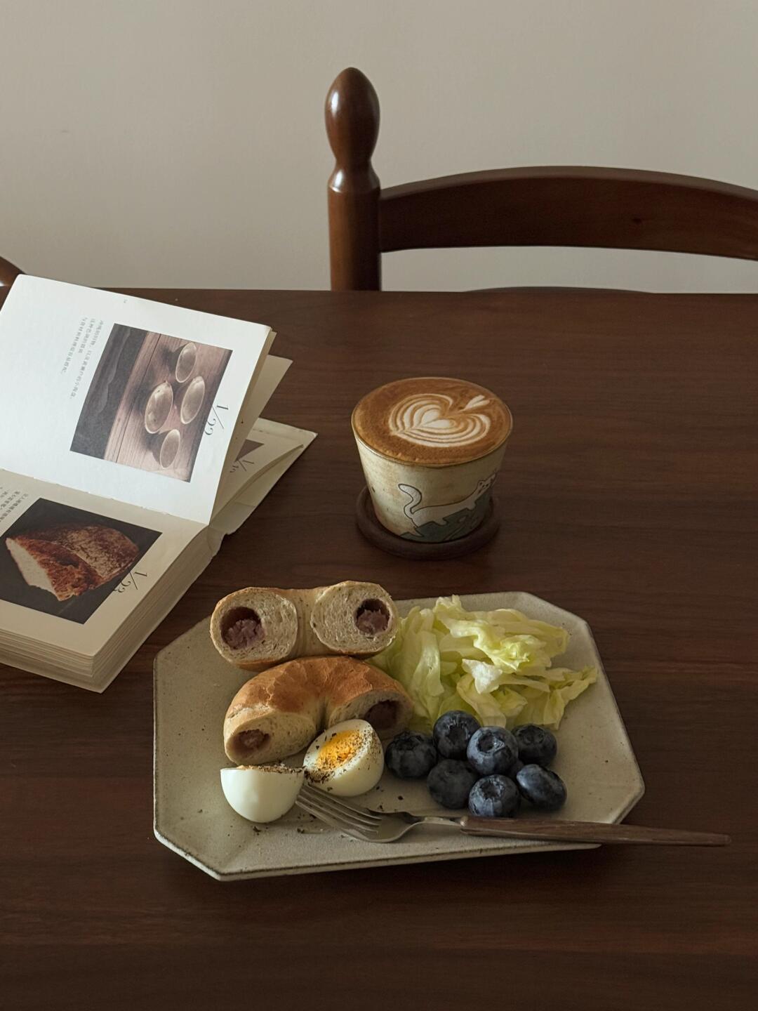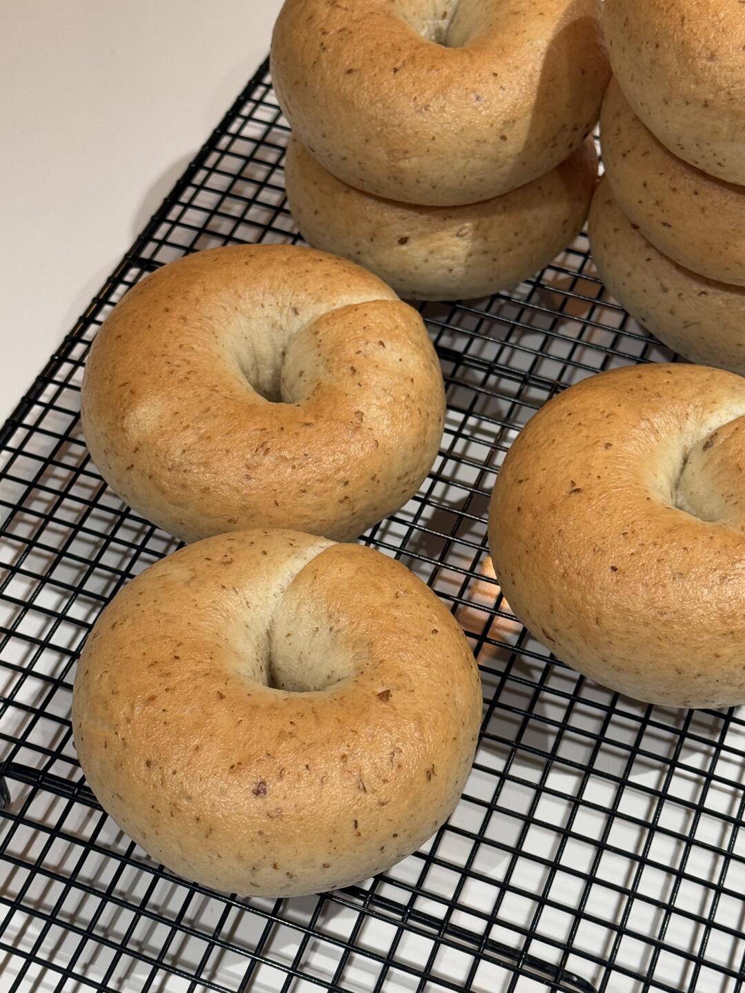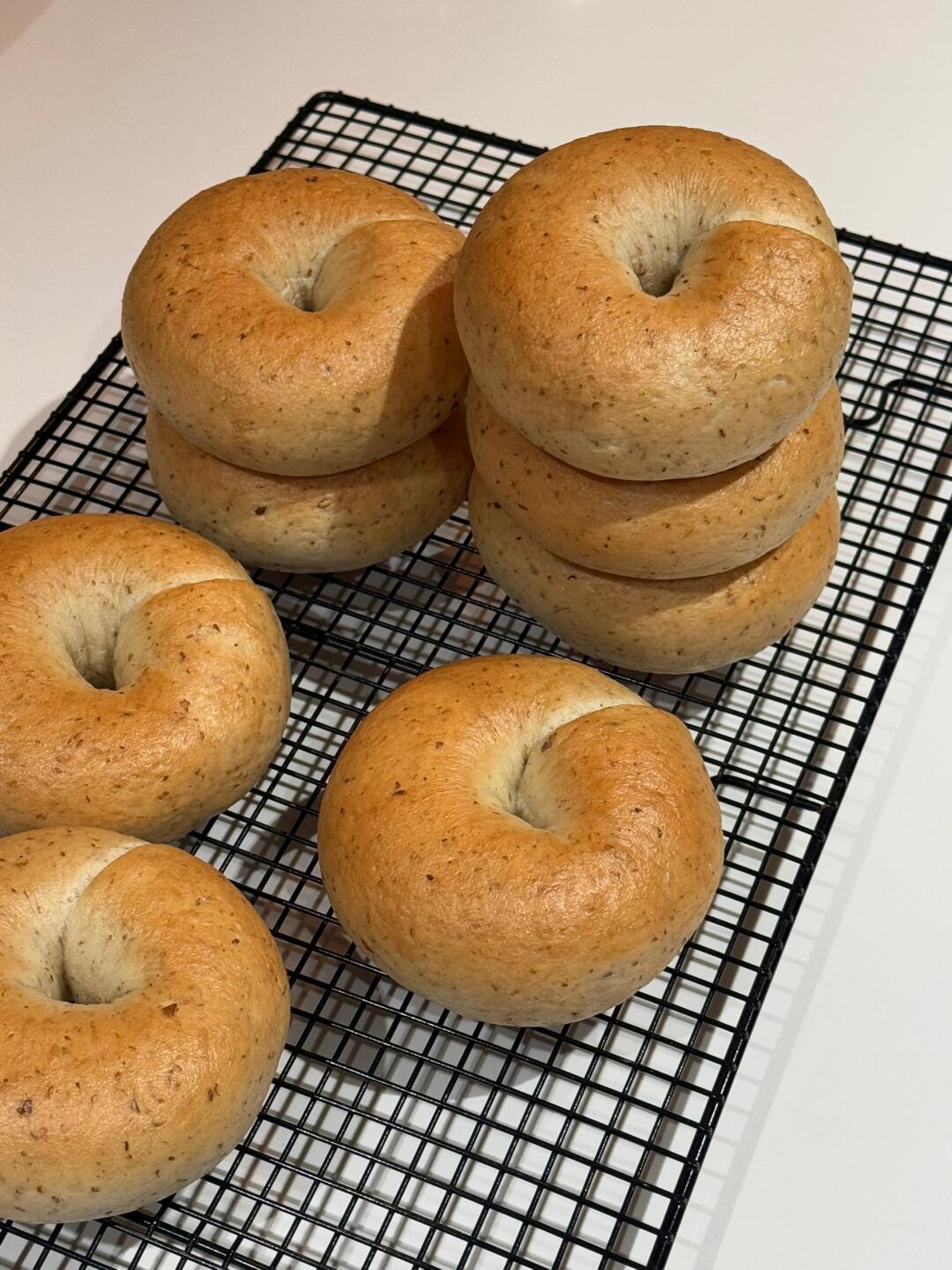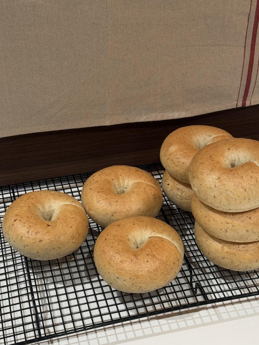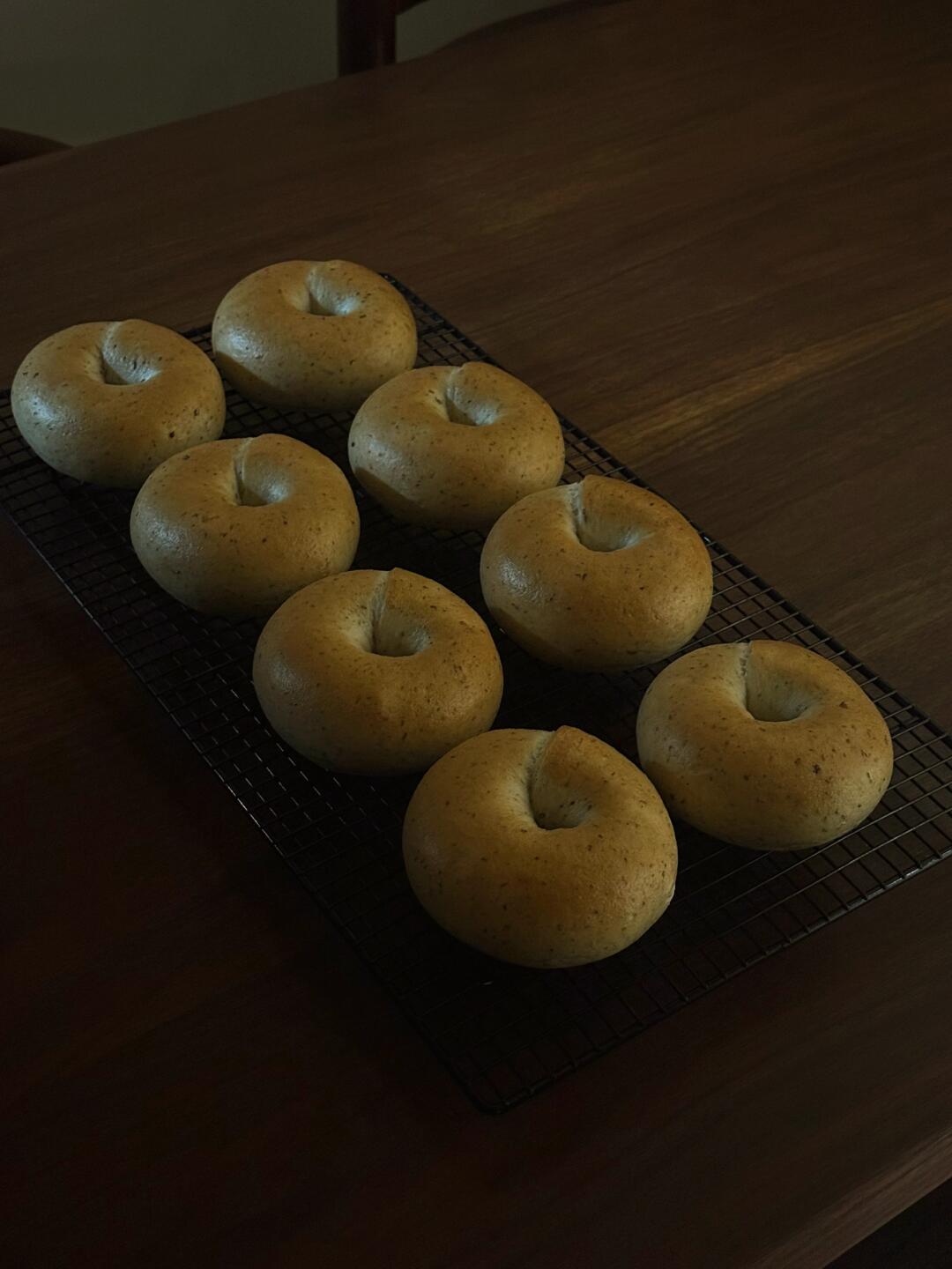 深夜出炉的无糖油桂花芋泥贝果🥯