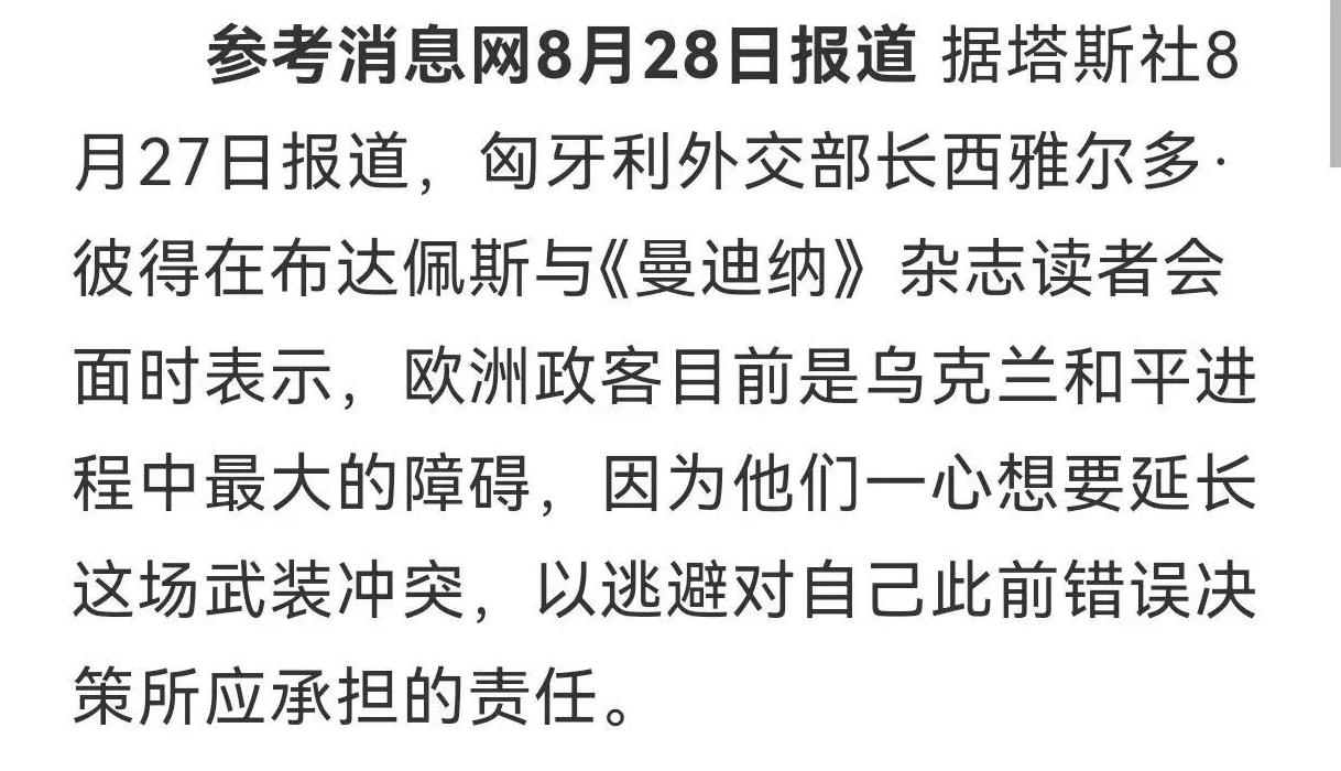 冯德莱恩不甘心 上不了桌子的冯德莱恩又在喊必须了,她说:“俄罗斯必须重返谈判桌,”可惜俄罗斯即便重返谈判桌,那张桌子也没有冯德莱恩的位置。 欧盟到现在还在继续拱火。匈牙利外长西尔雅多说出了真相,欧洲政客是乌克兰和平的最大障碍,他们想逃避此前错误决策所应承担的责任。其实抱有此心态的还有泽连斯基,一旦和平就会大选,泽连斯基很可能要被秋后算账。 花了无数的银子和军火,欧盟没取得任何成果,已经制裁了俄罗斯18轮,再来几轮又能如何?这责任冯德莱恩负得起吗?