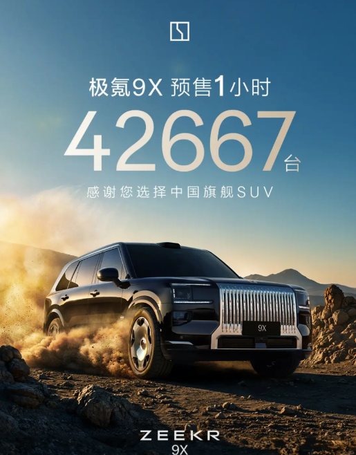 本以为在本届成都车展上,智己说它预售订单突破48000台就已经天下无敌了,没想到极氪9X比它还勇猛,1小时预售42667台! 这是什么概念? 极氪9X的预售价可是高达47.99万—56.99万啊,和问界M9差不多一个价位段,9X仅需1个小时就拿下了四万多预售订单…… 不知道你们怎么看,反正已经超出我的想象能力了。 有这么多预售订单,感觉新一代智己LS6和极氪9X大卖已成定局!