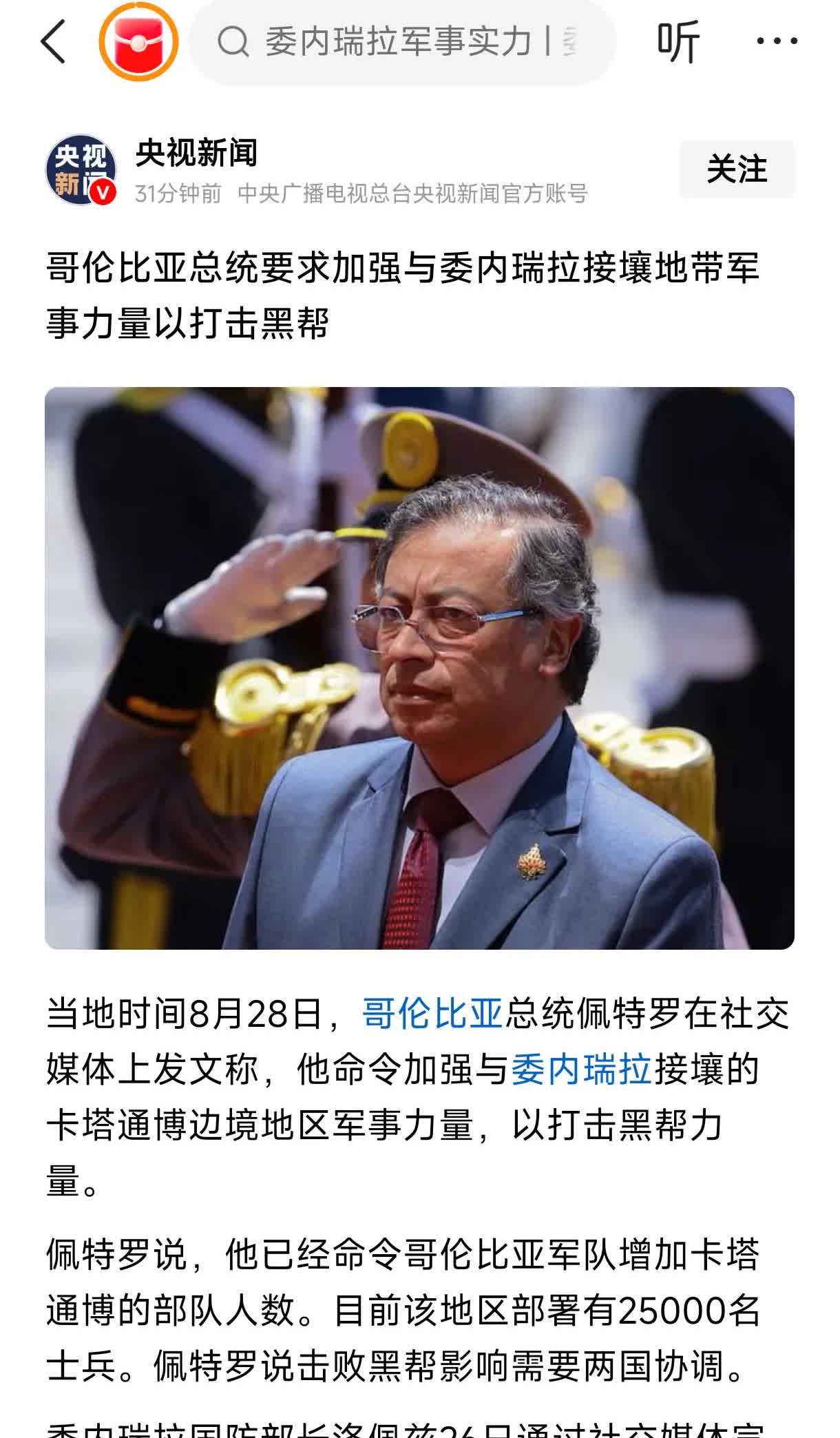委内瑞拉失火,哥伦比亚害怕殃及自己。美国对马杜罗定的罪名是贩毒,哥伦比亚毒贩也很猖獗,哥伦比亚总统坐不住了,开始打击黑帮力量了。 佩特罗也担心自己被美国贴在毒贩标签。