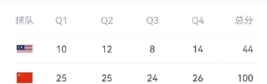 这根本就不是一个级别的比赛 U16亚洲杯小组赛中国男篮100:44马来西亚男篮,56分的分差,实力悬殊也太大了 一,吕飞燕砍下18分8篮板4助攻2抢断 三分球6投3中 赵博新14分8篮板 张懿赵杰12分4篮板1助攻2抢断 张子一全场唯一两双11分11篮板2盖帽 张淳智9分7篮板1助攻2抢断 杨子默9分2助攻、陈昱休8分6篮板9助攻 二,首发登场的直播吧评分最低的是石洺豪 3.2分,投篮竟然6投0中 再就是替补登场齐鹏帆7投1中#秋日生活打卡季#