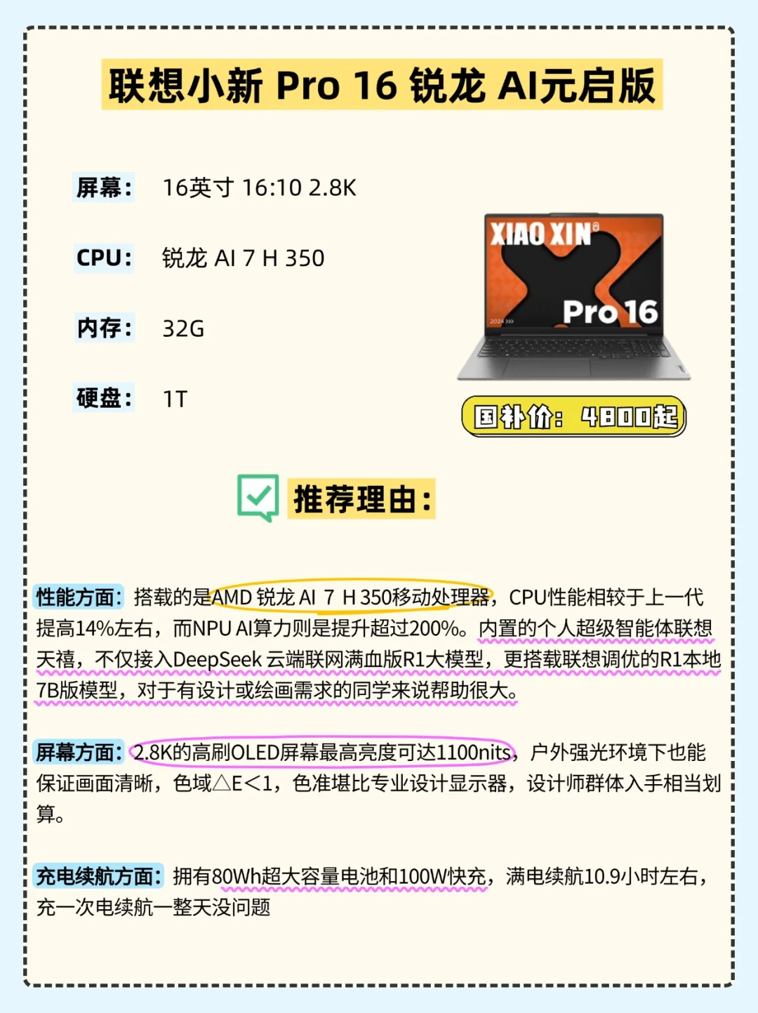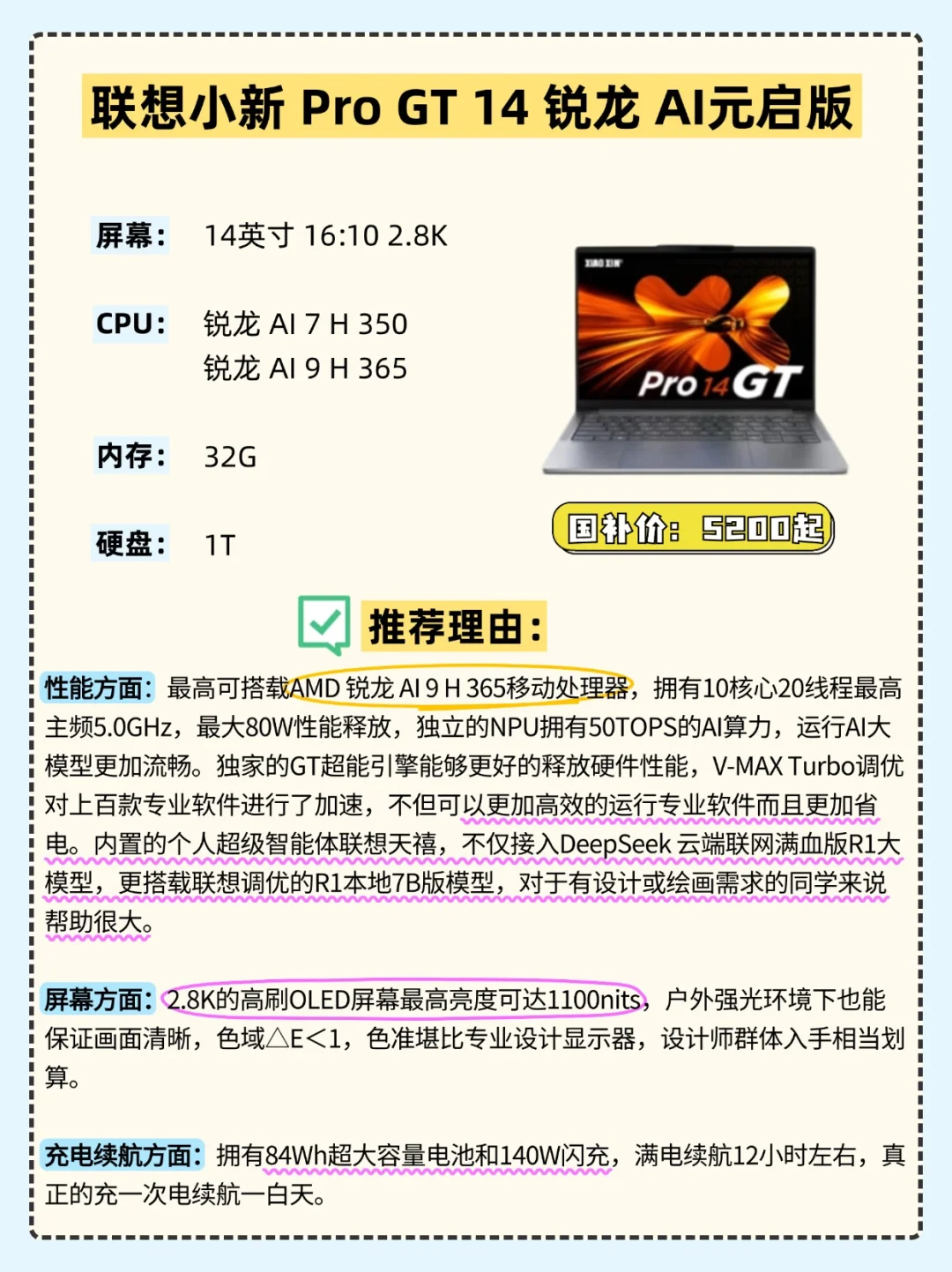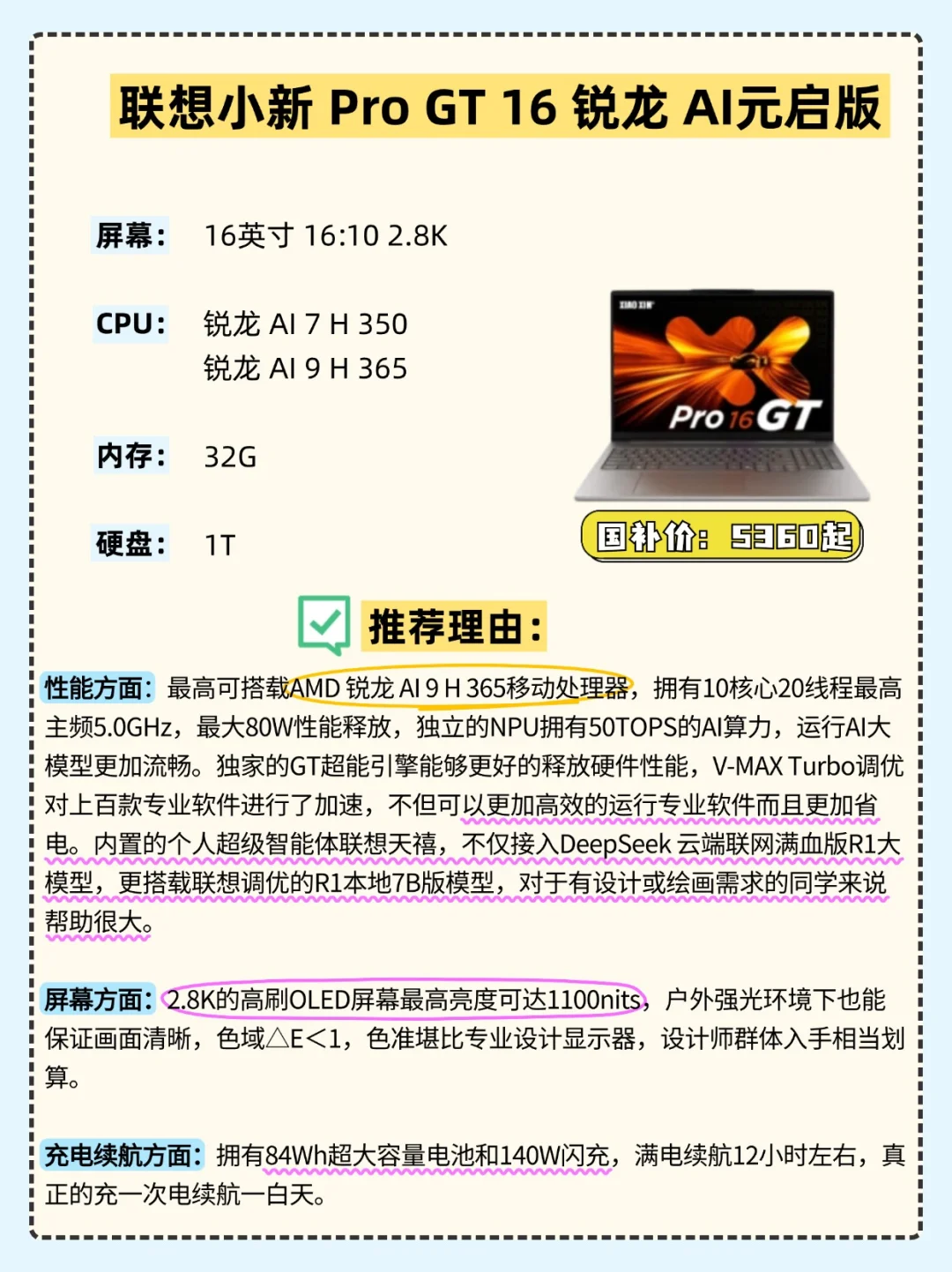 3月份很多大学已经开学了,相信最近有很多大学生想购置一台笔记本电脑,用来学习、追剧,顺便玩玩AI,作为一个数码博主,给大家总结了一下选购的重点,月初联想小新刚发布的新品笔记本,联想小新Pro和ProGT系列,AI功能相较于前代大幅提升,可以说是目前同价位最好的AI轻薄本了