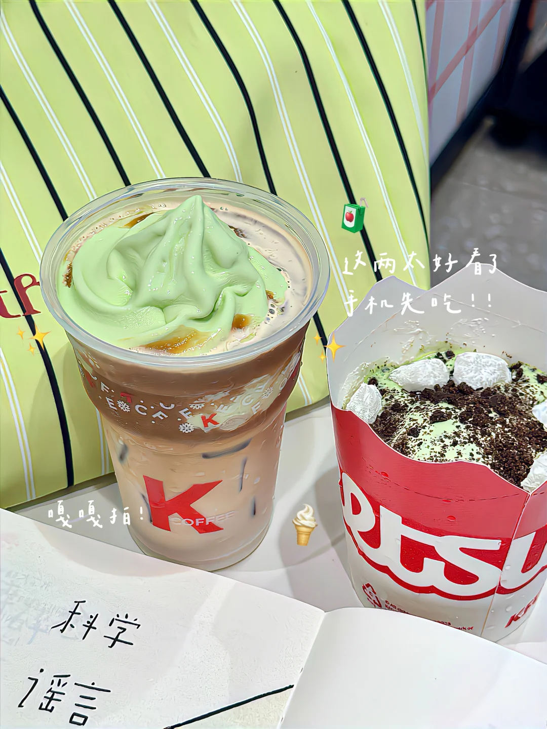 小咩🌀say:今日份绿色心情!!KFC联名蒙牛的绿色心情口味冰淇淋🍦一整个小时候滴味道👅拿到手我都不敢想象有多好吃!手机先吃📷我狂拍~奶呼呼的绿色尊嘟很出片🏝️