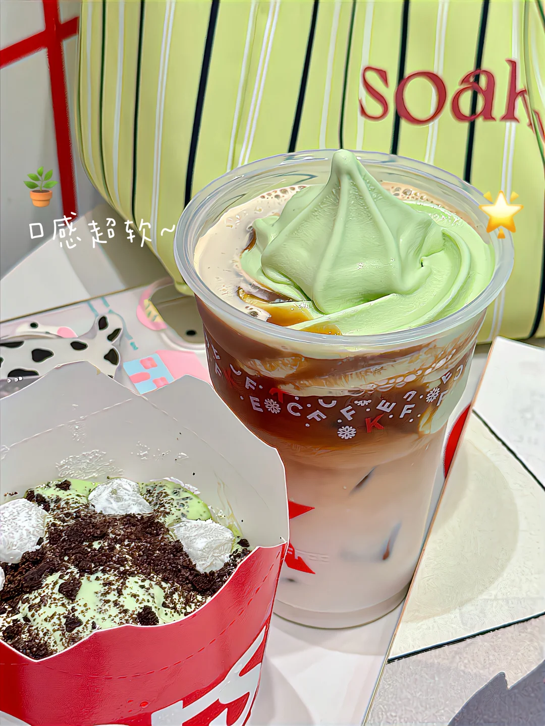 首先是速取窗限定的K飓风:醇香浓郁的绿豆味🏡还有麻薯+奥利奥🍪口感丰富有层次!!清爽解暑!