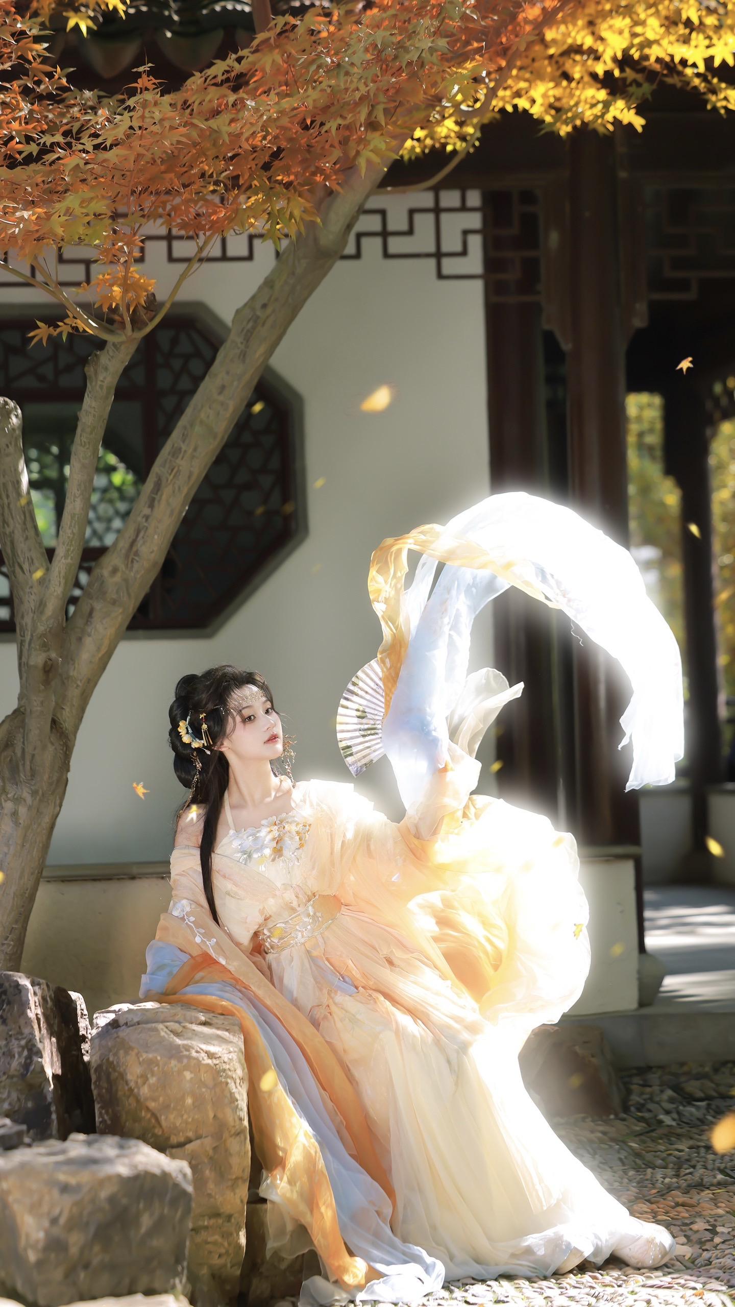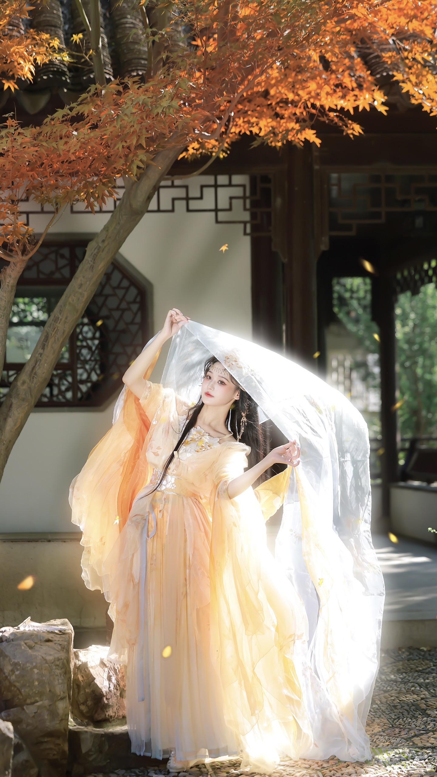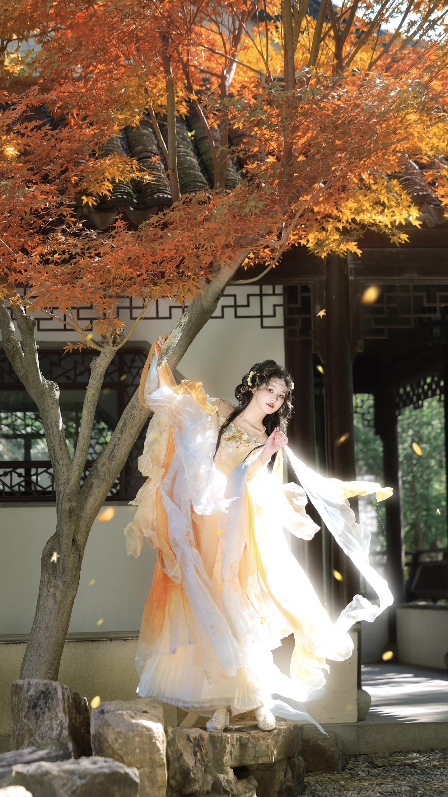 她好像一只振翅的蝴蝶🦋。好漂亮的秋天~🍂