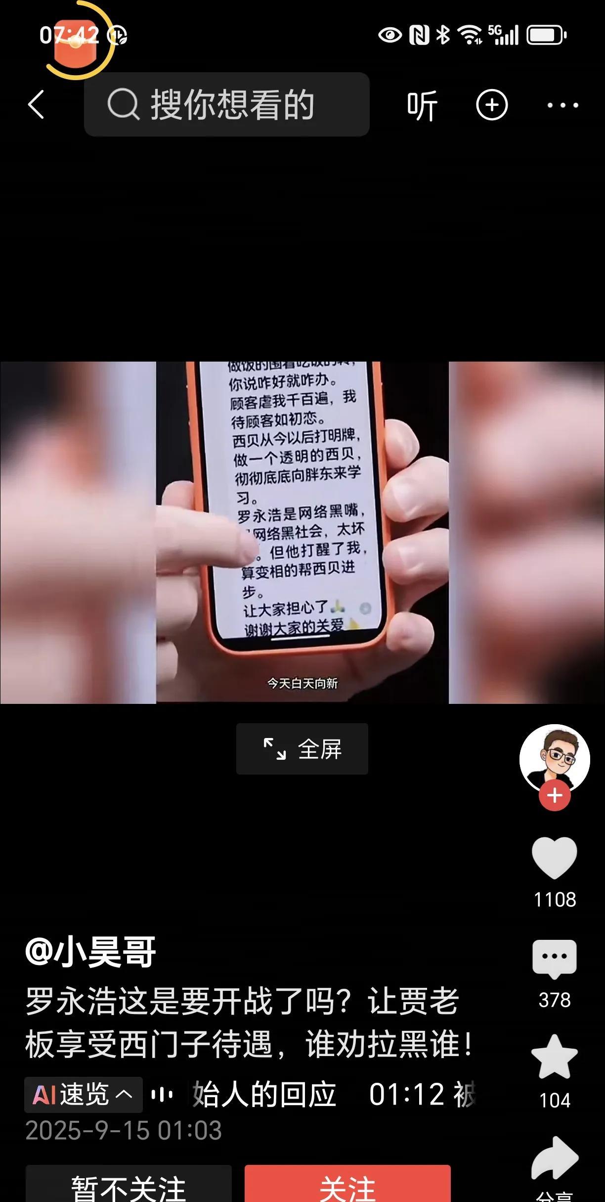 西贝事件,罗永浩看到网络贾总截图声明本来已经熄火可是有两个版本,罗永浩又火冒三丈