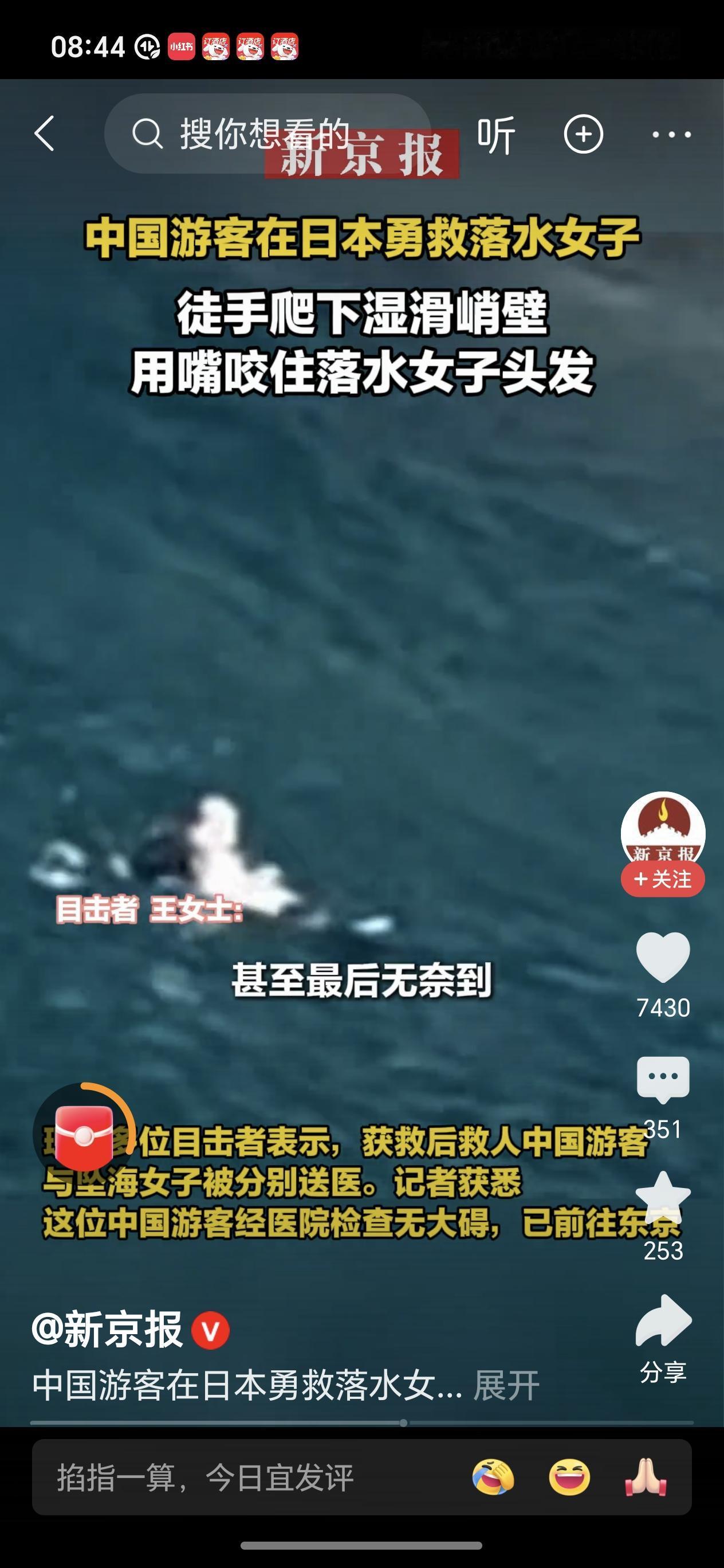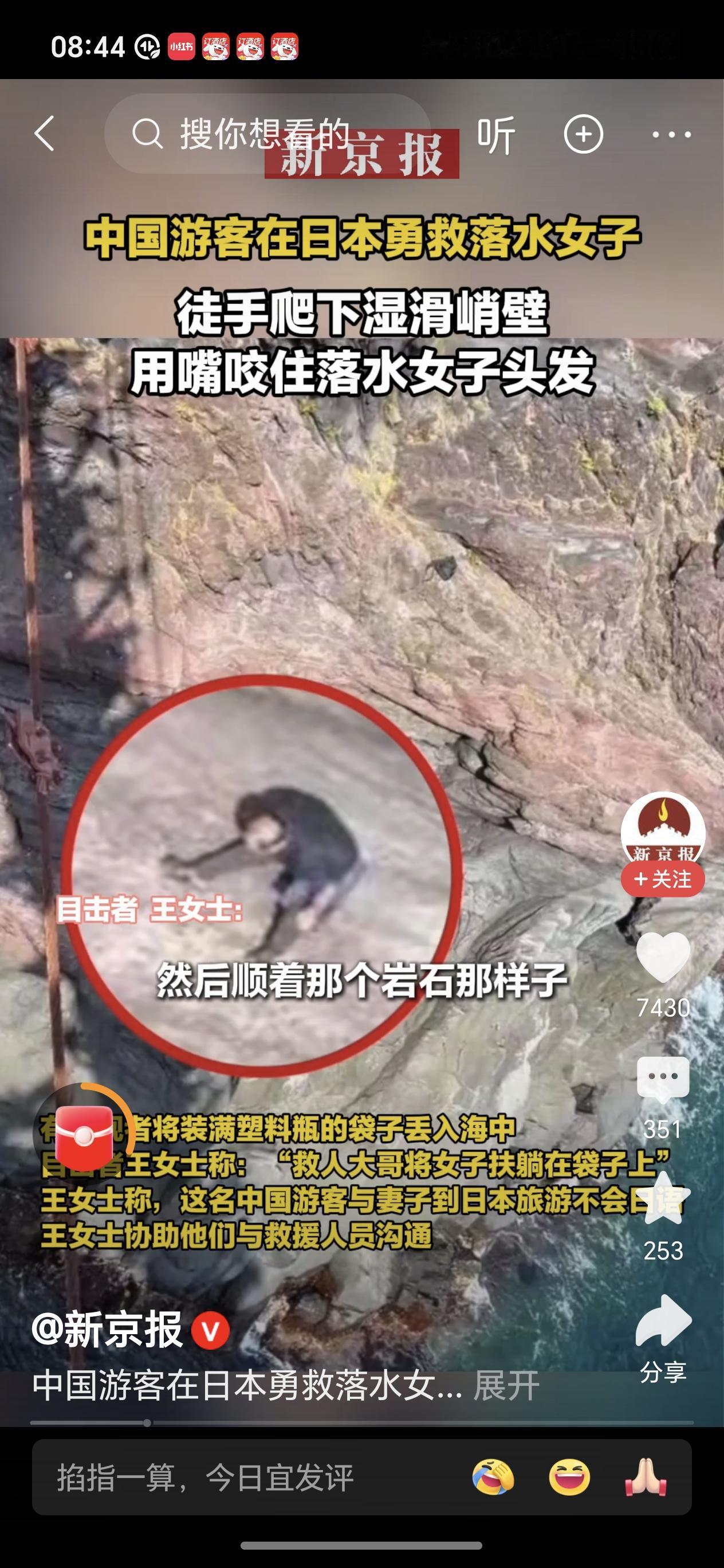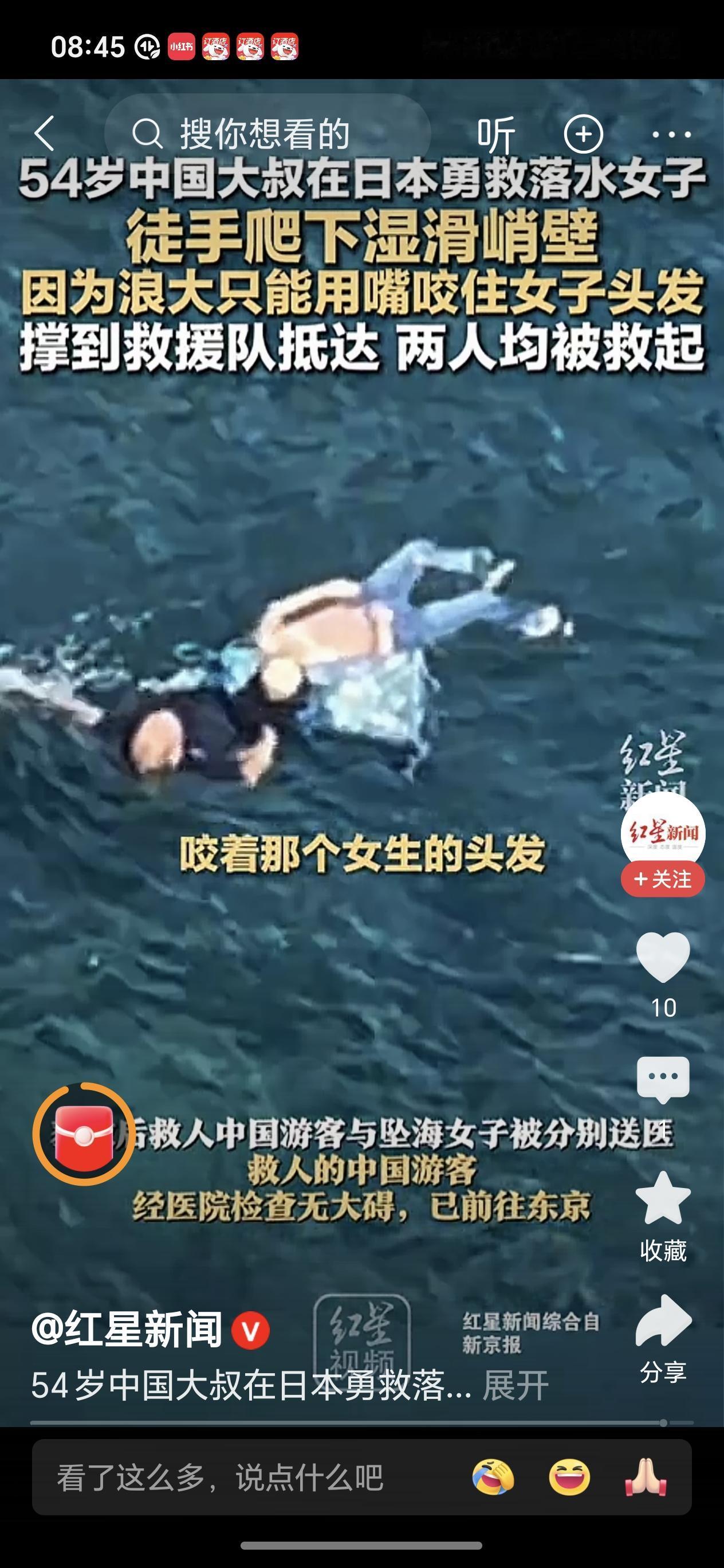 视频中这位54岁中国大叔越过围栏,顺着湿滑的陡峭的石壁一点点徒手爬下去,当时的风浪也特别大,距离岸边也是很远,大叔托救到女子后面没力气了,抓不住时无奈只能用嘴咬住被救女子的头发,最后自己精疲力尽,但仍坚持直到日本救援队到来,最终两人都获救送医救治。 这位中国大叔真是好样的,救人不分国界,是大爱之人!虽然他自己还患有高血压,但危急时刻仍然不顾个人安危舍己救人,尽显英雄本色,为他点赞,祝福他好人一生平安!