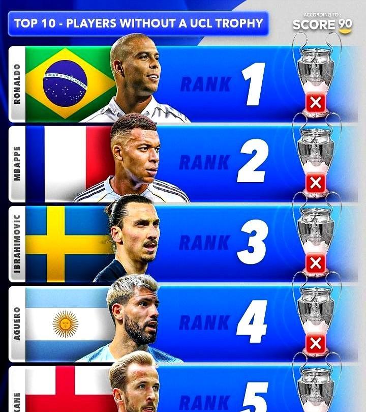 大罗没欧冠,你慌不慌? 2003年半决赛,他膝盖肿得像馒头,只能坐在替补席看皇马被尤文踢出局;2007年转投米兰,结果米兰当年夺冠,他却因上半赛季代表皇马踢过小组赛,连奖牌边都摸不到。 命运像故意逗他,把奖杯摆在他鼻子前又拿走。 内德维德更惨。 2003年决赛前一天,他在半决赛里吃到黄牌,累积停赛,只能穿西装看队友点球输给米兰。 那天他坐在看台,手一直抖,赛后把奖牌塞进口袋,回家锁进抽屉,再也没拿出来。 尤文后来降级,他也没机会重来。 巴蒂、托蒂、伊布,都是把忠诚写在脸上的人。 巴蒂为了佛罗伦萨留到31岁,错过最好时机;托蒂死守罗马,连皇马邀请都不去;伊布辗转九家豪门,每次换队都赶上欧冠出局。 他们不是没实力,只是选择了比奖杯更重的东西。 凯恩还在跑,2023年去了拜仁,离欧冠近了一大步。 姆巴佩更年轻,只要点头去皇马,冠军概率立刻翻倍。 可谁知道呢? 足球有时候就是不给好人回报。 你觉得凯恩和姆巴佩一定能圆梦吗?留言区说说,谁最让你心里过不去。