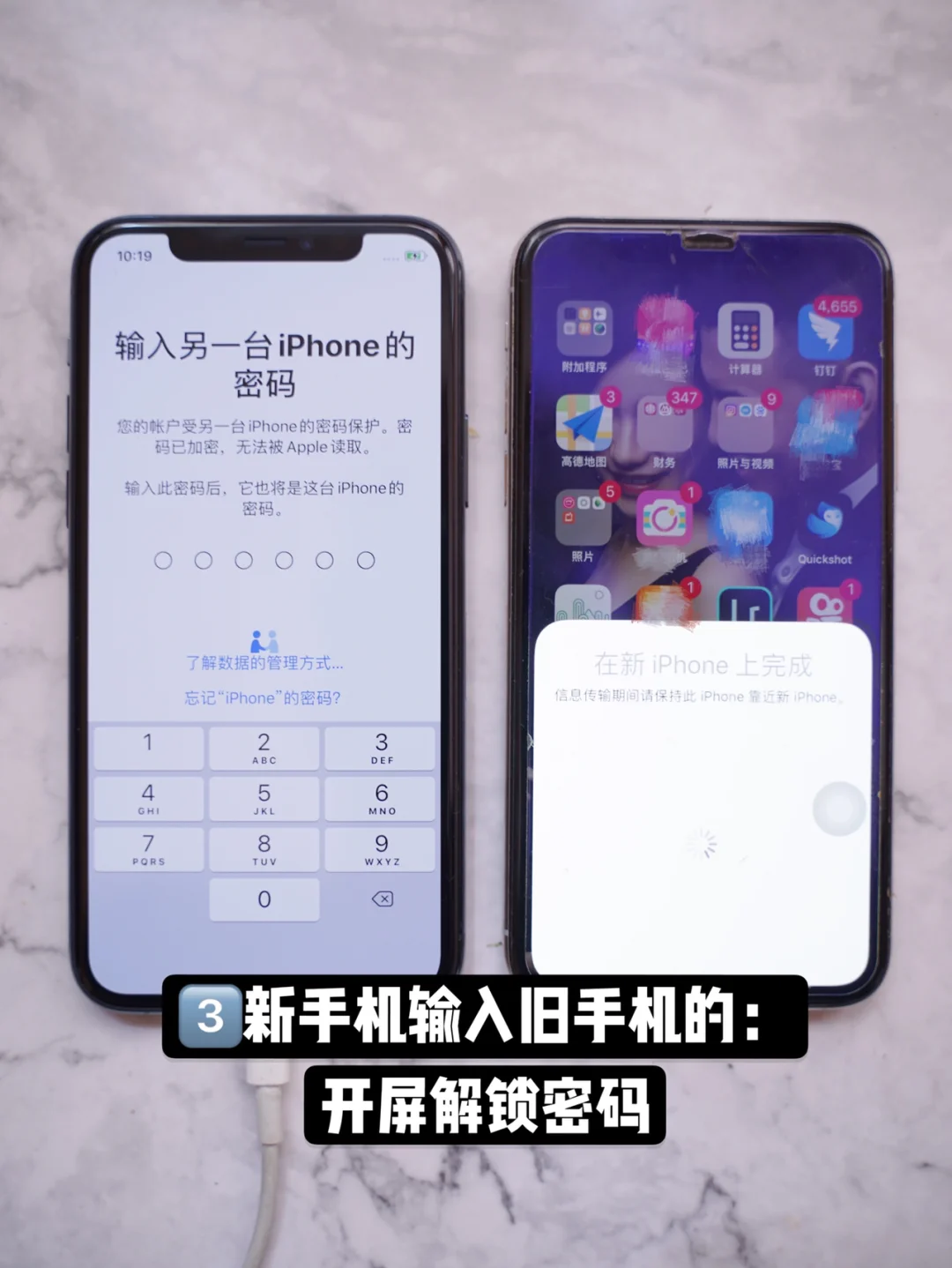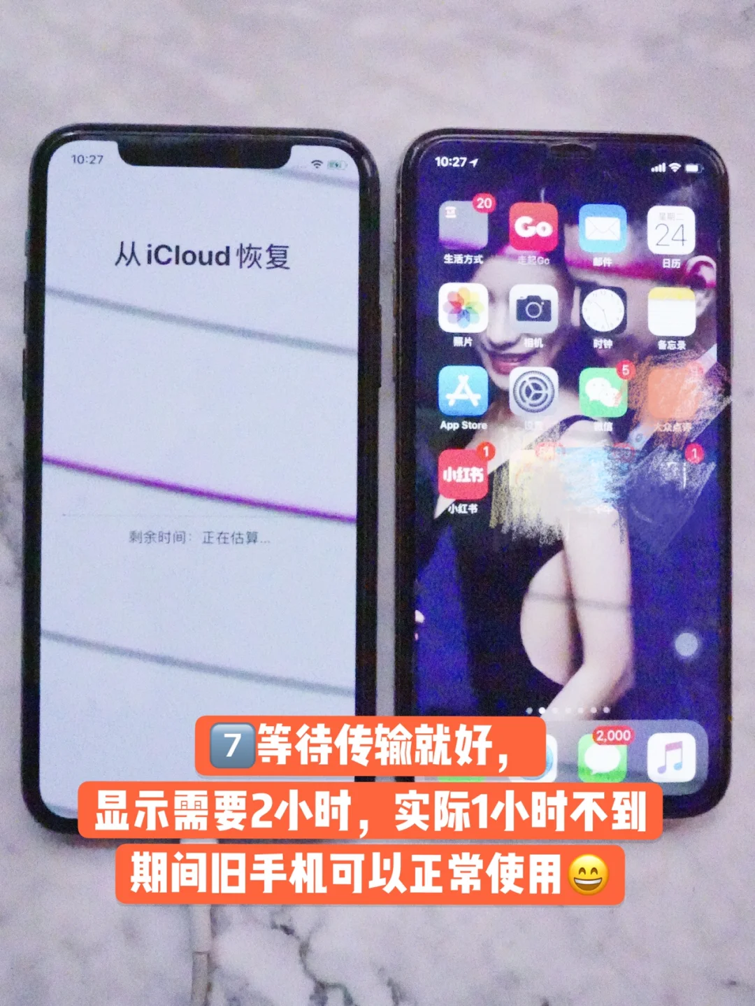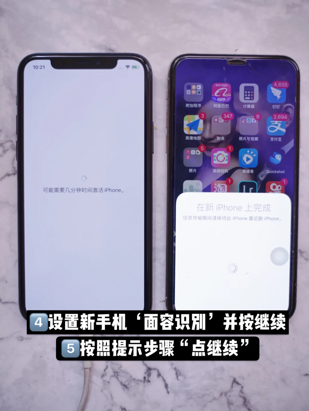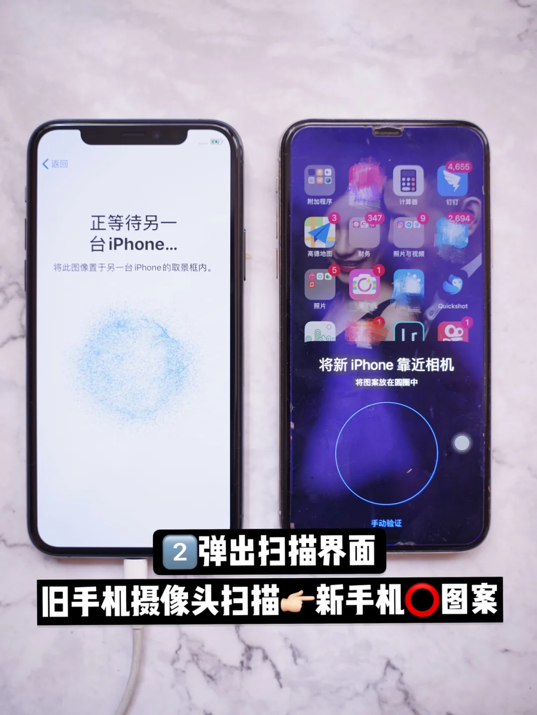 换新手机照片软件自动传输,开启蓝牙👉🏻几步搞定 ✅照片视频备忘录+通讯录+软件 +桌面位置一样 时间:1小时不到(5万多张照片) ⭐️【方法】 1⃣️新旧手机打开蓝牙,放一起跳出:设置新iphone 2⃣️弹出扫描界面,扫新手机图案 3⃣️新手机输入之前的:开屏密码 4⃣️依次设置 面容,语音识别 5⃣️等待“传输”😄期间旧手机正常用 新手机已激活? 设置-通用—还原-抹除之前内容 📷Iphone11 pro摄像头清晰,不明白可以留言问我哦