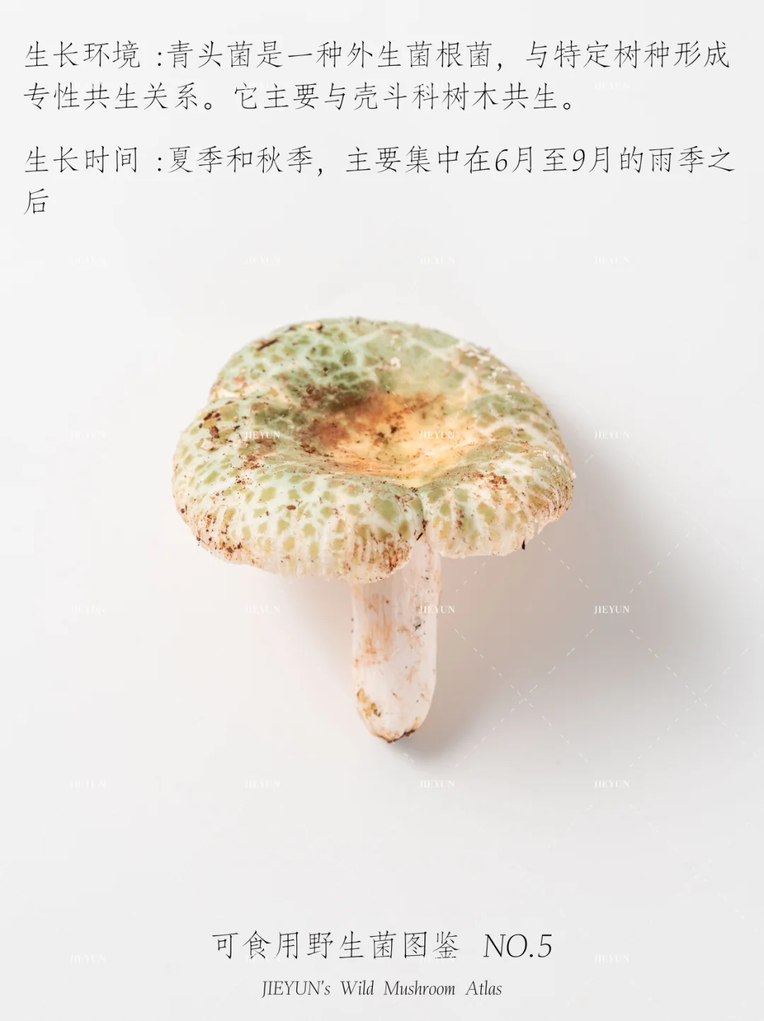 生长环境与生态: 青头菌是一种外生菌根菌,与特定树种形成专性共生关系。出菇时多为散生或群生。