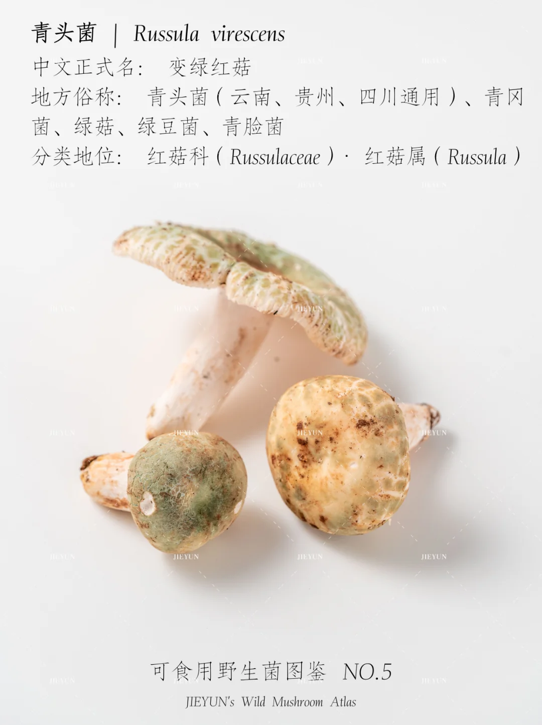 地方俗称: 青头菌(云南、贵州、四川通用)、青冈菌、绿菇、绿豆菌、青脸菌