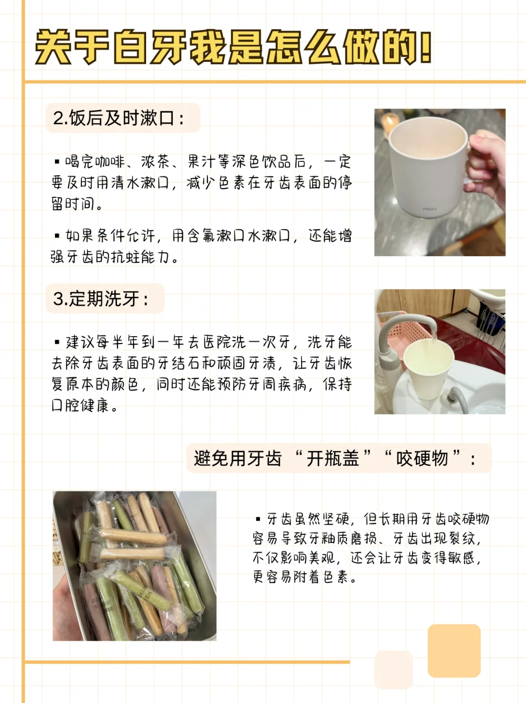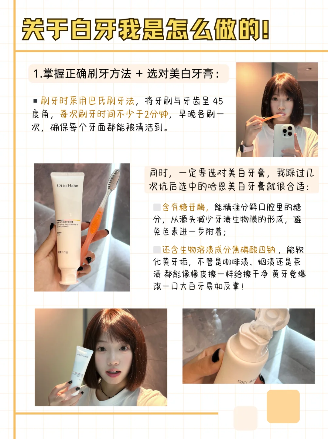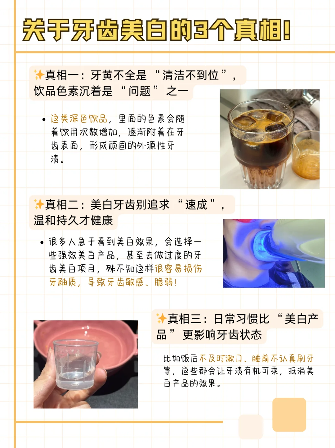 看着镜子里日渐暗沉的牙齿,别说自信微笑了[失望R]就连和人说话都忍不住下意识捂嘴。尝试过不少网传的美白小偏方,要么没效果,要么刺激得牙龈发酸[哭惹R]直到我摸清了牙齿美白的真相,才终于摆脱了牙黄的烦恼❗