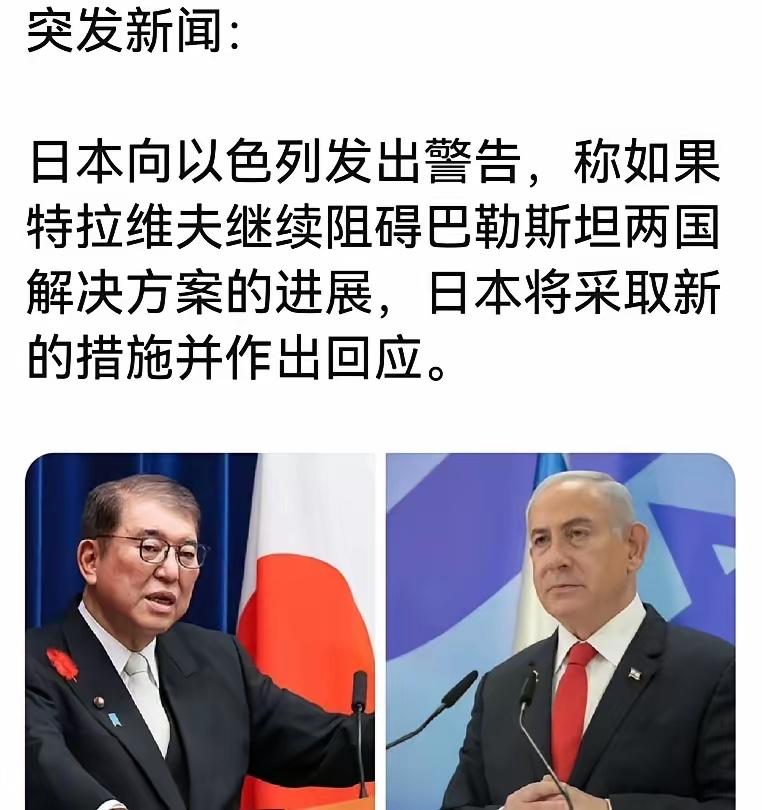 快讯!快讯! 日本宣布了 外媒刚刚传来消息,日本突然对以色列发出了警告,这让不少人感到意外,毕竟在很多人印象里,日本和以色列一直关系不错,两国在经济和科技领域都有很多合作,平时也很少公开产生矛盾。 不过这次,日本首相石破茂在第80届联合国大会的一般性辩论上,突然给以色列“敲了警钟”,他明确表示,日本承认巴勒斯坦国只是时间早晚的问题,不是“要不要承认”,而是“什么时候承认”,这样的态度非常罕见。 日本这次的表态简直像往外交圈扔了一颗深水炸弹。要知道,几个月前日本还因为暂不承认巴勒斯坦国被美以公开点赞,结果现在直接调转枪口,连点铺垫都没有。更狠的是,日本副代表筱光子在安理会会议上直接点名批评以色列财政部长“饿死加沙平民合理”的言论,用词尖锐到连美国盟友都捏把汗。这种反转堪比政治版“速度与激情”,只不过方向盘打得太猛,连美国都被甩出了车窗。 明眼人都能看出日本在打什么算盘。这个国家90%的石油靠进口,中东一乱整个经济都得抖三抖。尤其伊朗还是日本的重要供油国,要是以色列真和伊朗干起来,日本的工厂电价交通费全得炸锅。再说日本在中东投了那么多家电厂汽车厂,战火一烧钞票直接变灰。这时候跳出来当“和平使者”,说白了就是给自家经济买保险。 但日本这套道德戏码背后藏着不少黑历史。外交部最近刚点名批评日本首相的联合国演讲回避“侵略”“道歉”关键词,连战争加害者责任都懒得提。更讽刺的是日本一边喊着和平,一边囤着46吨钚材料,够造几千枚核弹。现在高调谴责以色列,倒像是抢在别人掀老底前先占领道德高地。 国际社会的反应更让以色列冒冷汗。日本话音刚落,联合国立马以124票赞成通过决议,要求以色列一年内结束对巴勒斯坦领土占领。英国加拿大法国这些老牌亲以国家集体倒戈,连德国都暂停对以军售。以色列总理内塔尼亚胡嘴上说“靠自己”,实际连军中都爆出性侵囚犯丑闻,形象早就千疮百孔。 美国这次彻底被盟友背刺。国务院记者会上发言人支支吾吾说“美日同盟仍牢固”,眼神却飘得像找地缝钻。特朗普气得在网上骂日本“不配合战略”,北约直接取消在日设办事处作为惩罚。但日本铁了心要往阿拉伯世界靠拢,据说正密谈要在巴勒斯坦建国里当“中间人”。这场面就像黑帮电影里二当家突然带小弟另立山头。 日本的冒险背后是全世界厌倦单极霸权的信号。当沙特和巴基斯坦签共同防御协议,当欧盟对以色列祭出426亿欧元制裁,那个美国说一不二的时代正在崩塌。日本看准了现在站队能同时赚阿拉伯人情和国际口碑,顺便把核问题等黑历史洗白一波。但赌注下得太大——万一美国秋后算账,东京能不能扛住华盛顿的压力还是未知数。 这场外交地震最荒诞的是利益与道义的错位。日本用“和平反战”人设掩护能源危机,以色列拿安全当借口掩盖领土扩张,美国靠盟友体系却控不住场面。就像网友调侃的那张美日以领导人合影配文:“没有永远的朋友,只有永远的利益”。或许从日本反水这一刻起,世界已经悄悄翻页了。 各位读者你们怎么看?欢迎在评论区讨论。