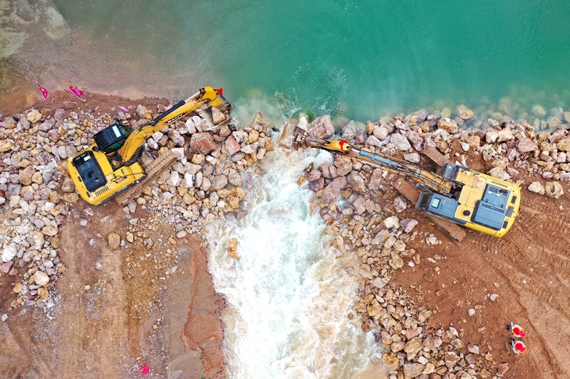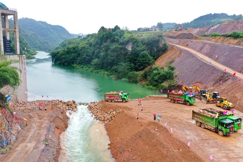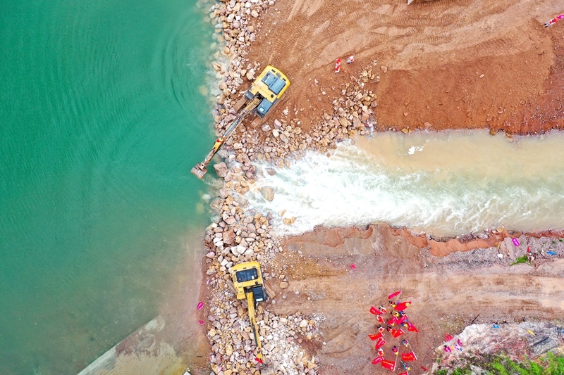 9月25日,拍摄的国家重大水利工程宣威水库枢纽工程截流现场。潘希来摄