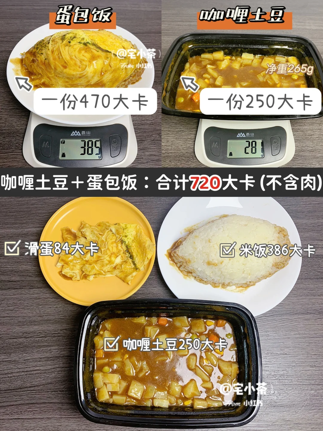 减脂期米饭和咖喱只吃一半,热量约470~650大卡。