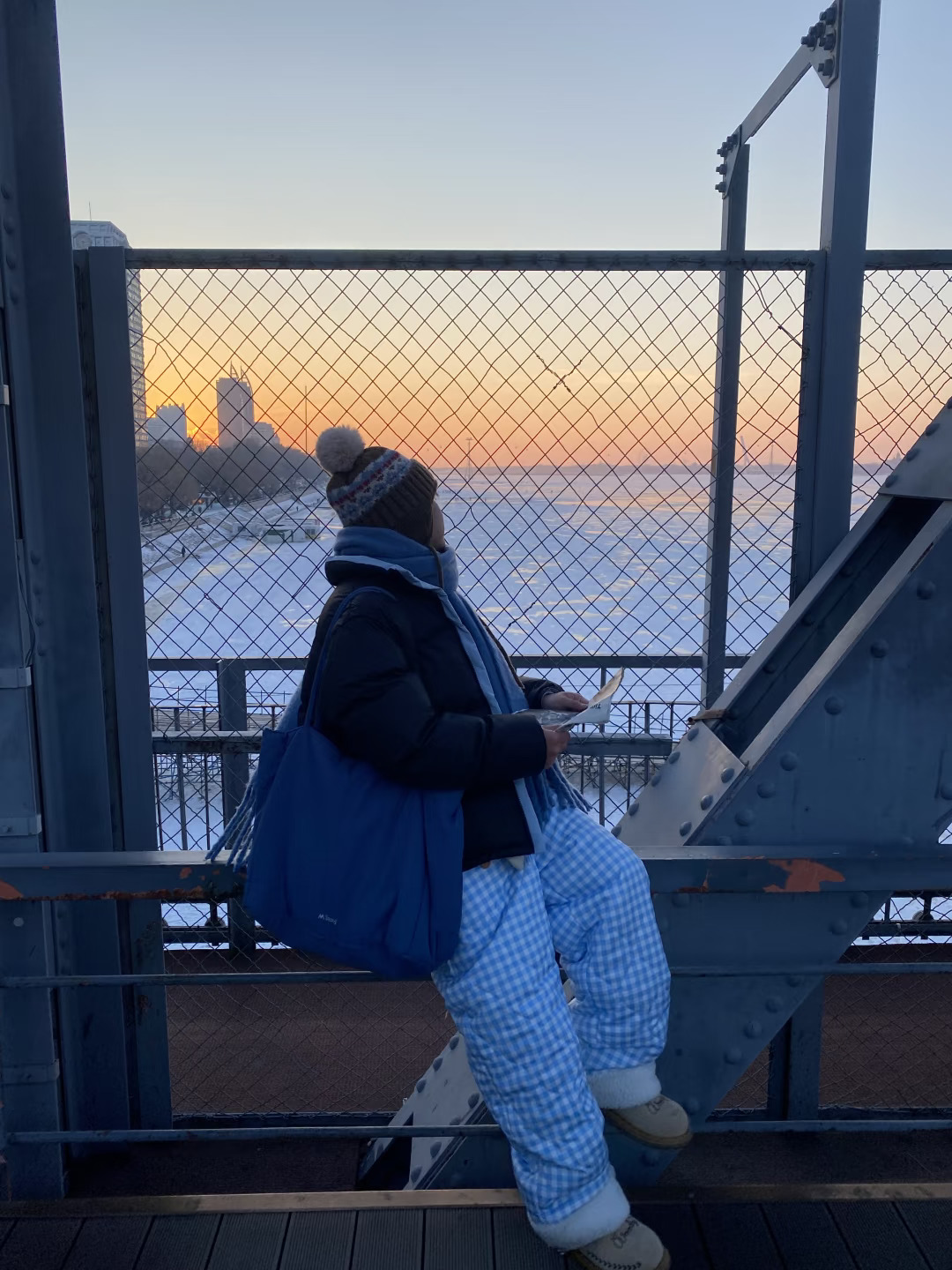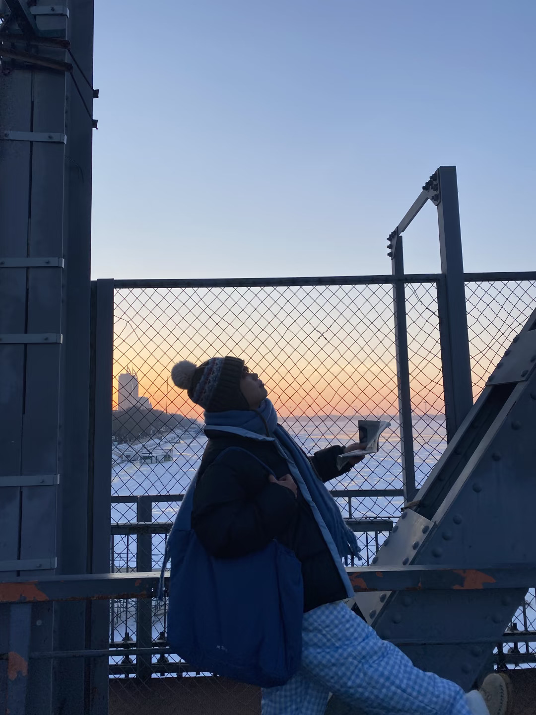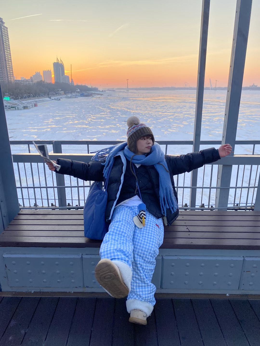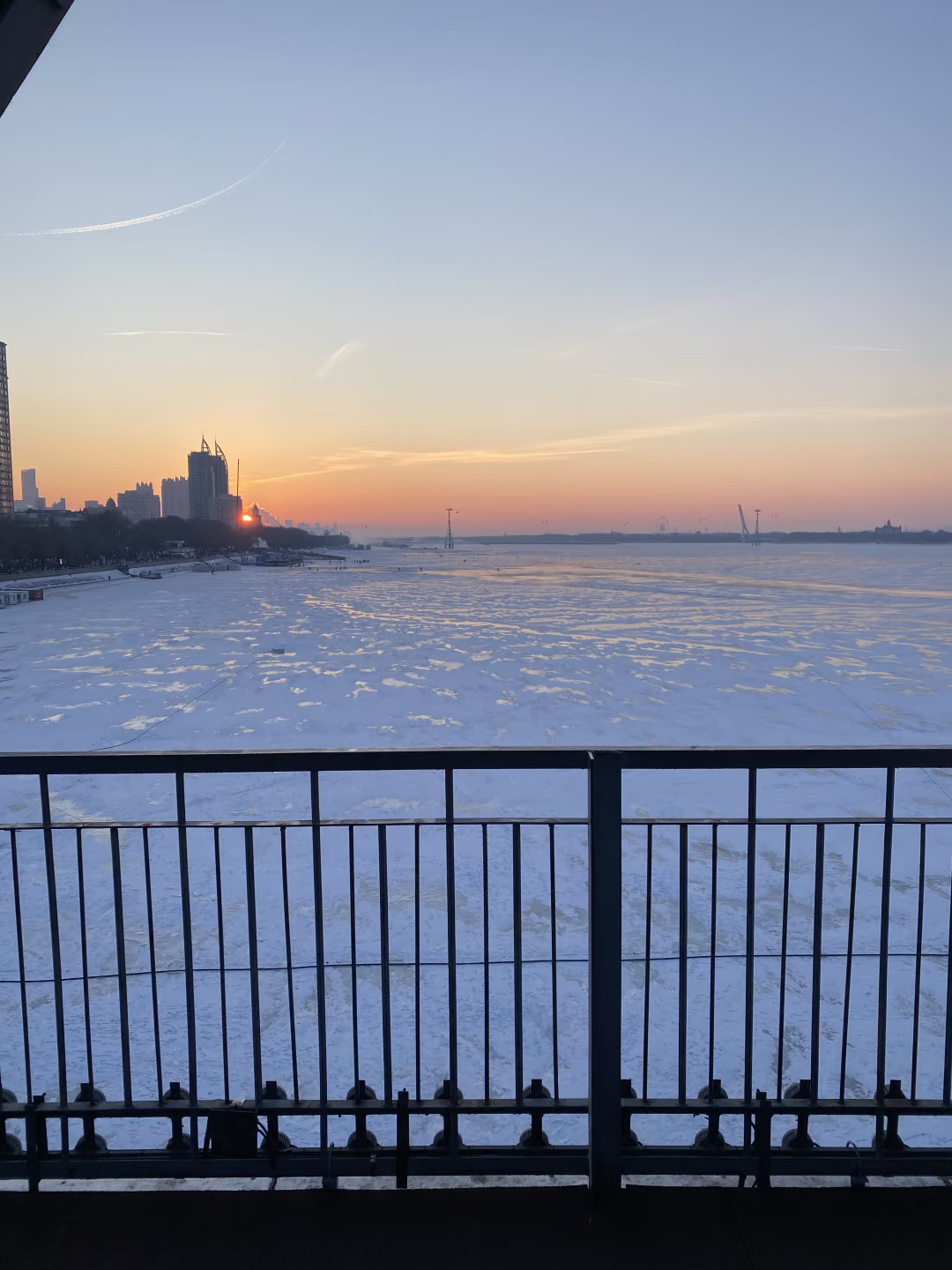 12.19实况哈尔滨松花江大桥晚霞太美了!