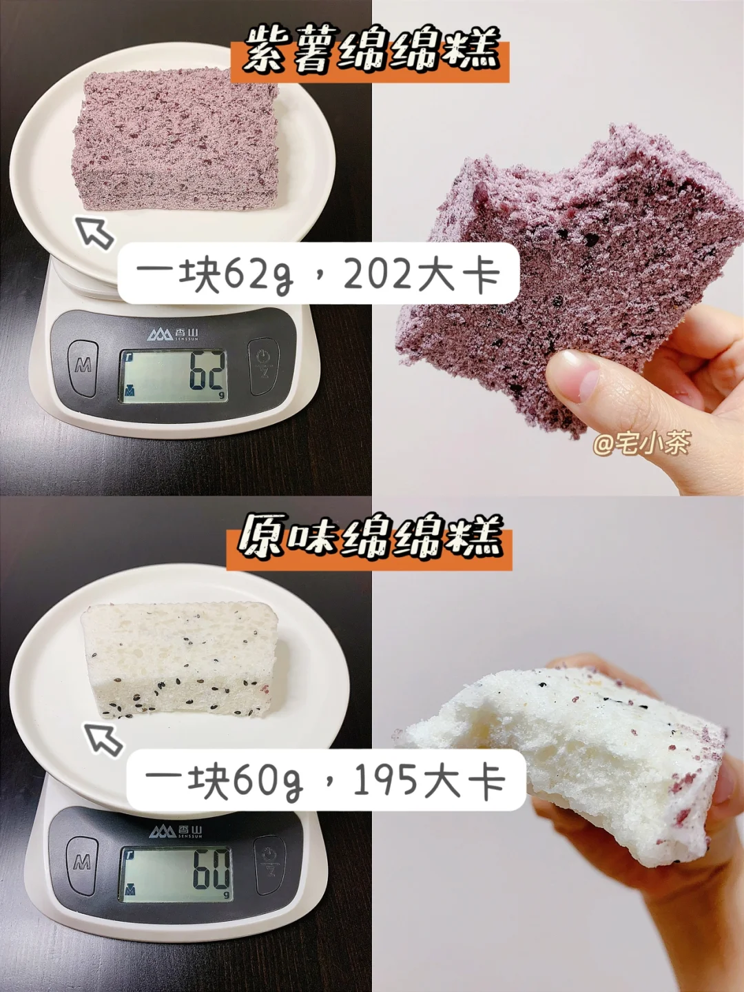 原味绵绵糕:一块60g,195大卡