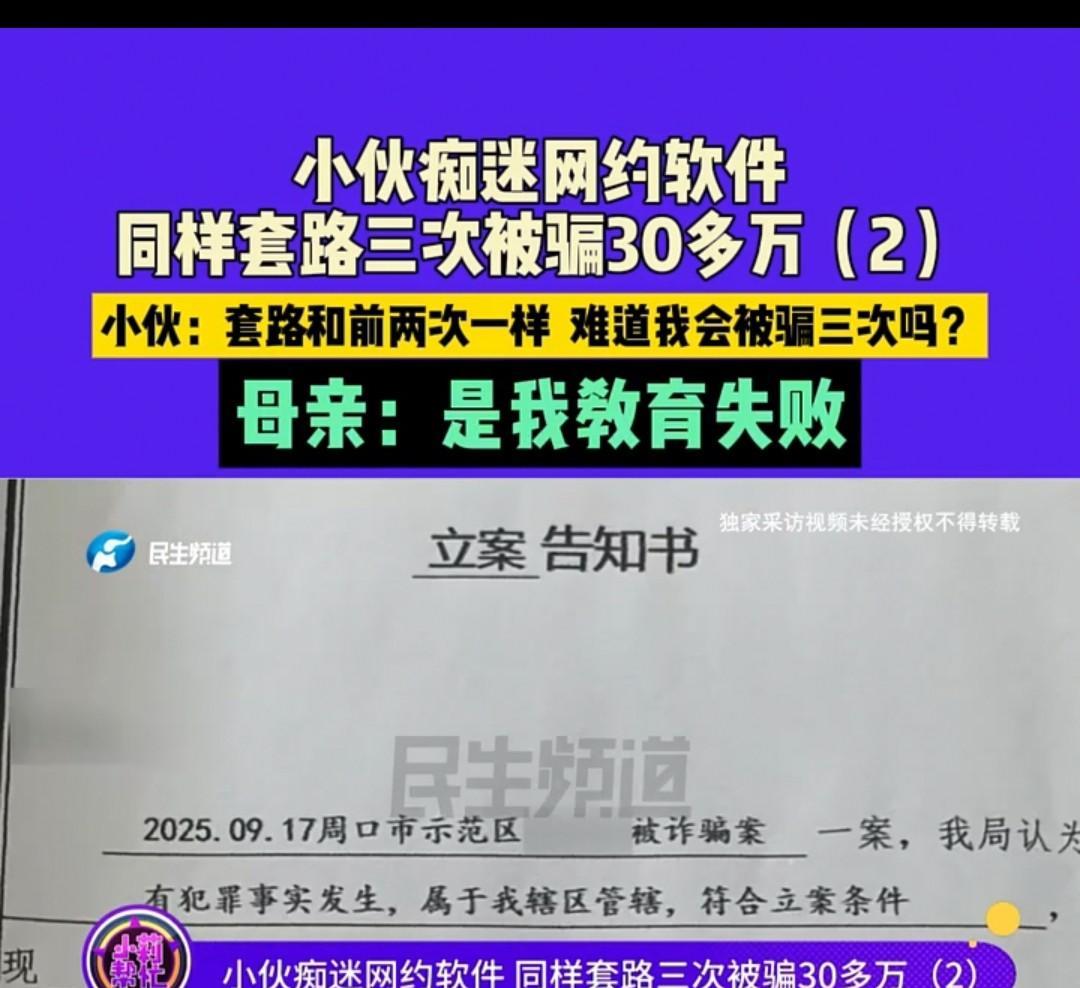 周口,男子在公厕看到有交友的二维码,便好奇地交了钱、开通了会员。第一天交了9万,没见到女友,感觉被骗,心里却很不甘心。第二天又去公厕,另外下载了一个软件,虽形式不同,却同样被骗了9万多。男子觉得“再一再二不再三”,后来在车子的小卡片上看到同城交友信息,又注册了会员,交了1380元后,对方发现他之前有两个账号,称可以帮他注销,还能把里面的钱全部提出来。男子又交了几万,之后对方说想要提现还得交钱,甚至让他把钱放在乡村的变压器下面。当时男子才隐约觉得可能被骗,却还是给了钱。最后对方又借口让男子交钱时,双胞胎哥哥发现了,赶紧带着他去报了警。 素材来源于:河南民生频道9月27日报道。 小徐20几岁,还是单身,特别渴望交到女朋友。因此,他在上公厕时,突然看到门上有交友二维码,一时好奇就扫了,下载了软件。 进去后,他花13元开通会员,软件里可选择的交友对象年龄在18、19、20岁不等,还标注了身高和样貌。 小徐选了一个自己喜欢的类型发出邀约,对方约定的见面地点是一家酒店。 可小徐到了之后等了两个小时,也没见到人,对方却告诉他“需要完成三次会员认证才行”,还说“认证后交的钱会全部返现”。 小徐觉得这很划算,不管交多少最后都能拿回来,于是按对方要求一次次转钱。 短短一个下午,就从13元的注册费,陆续支付了9万多。 可直到晚上,他既没见到交友对象,钱也没提出来,这才意识到被骗,心里却满是不甘心。 第二天,小徐又去公厕,发现另一个交友二维码,下载软件后,页面显示“免费”,但要开通会员仍需支付23元。 他明知套路可能和之前一样,却克制不住想邀约的冲动,接着往下操作。 后来他的银行卡被限额,对方竟提出“线下交易”,小徐不知怎么想的,真把钱取出来,拍照发给对方确认后,放在了加油站旁的一棵大树下。 对方不停催促他离开,说“拿到钱、见了面就把钱全退给你”。 小徐满心期盼能见到对方,根本没多想,一心照着做。 可钱交出去后,对方又说“你信用分差两分,钱提不出来”,让他再交6万才能解决。 小徐这时候已经没钱了,之前的钱大多是借的,只好没交这笔钱。 到了晚上,小徐还是睡不着,满脑子都是交女朋友的事。 他想着“再一再二不再三,第三次肯定不会被骗了”,第二天出门时,看到车子上贴着同城交友的小卡片,又忍不住扫码注册,交了1380元开通会员。 这次对方说“能看到你之前的两个账号,可以帮你注销,还能把里面的钱全部提现”,小徐一听能拿回之前的钱,立刻信了。 对方先让他交5000元“注销通道费”,他交了;接着又要2万“注销费”,他也给了。 更蹊跷的是,对方还让他开车到农村乡道上,把钱放在一个变压器下面——这套路和之前“放钱在大树下”几乎一样。 小徐这时候隐约觉得不对劲,可一想到之前已经被骗了近20万,现在才交2万,总盼着能拿回钱,还是照做了。 直到对方又一次让他凑钱,他正准备想办法时,双胞胎哥哥发现了异常,赶紧拉着他去报了警。这时候,小徐才彻底清醒过来。 事后他自己也想不通,怎么就一步一步跟着对方的要求做了,唯一清楚的是,当时太迫切想交到女朋友,才会一次次陷进去。 小徐的妈妈哭着说:“你怎么就不长心眼?被骗了30多万,这可是天文数字啊!” 一、对方以“交友奔现”“注销账号返钱”为由骗小徐30多万元,该行为是否构成犯罪? 二、小徐被骗后已报警,可通过哪些法律途径追回损失? 对于这件事,大家又是如何看待的呢?文中人物均为化名。