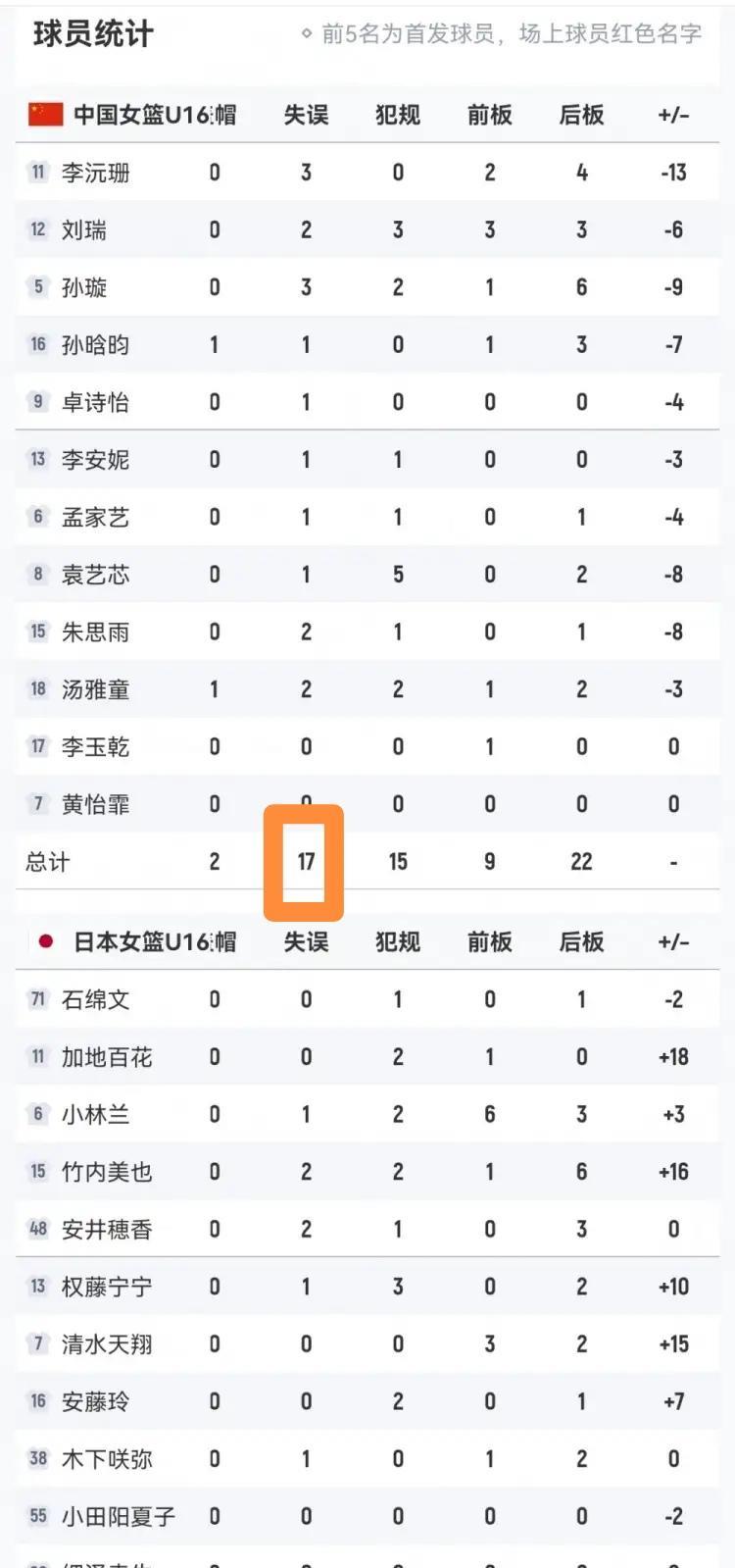 中国U16女篮真是扶不起来的阿斗!在今天结束的一场U16女篮亚洲杯季军争夺战中,中国女篮以58:71输给老对手日本女篮。本场比赛,中国女篮失误过多的老毛病又犯了,据数据统计显示,整场比赛中国女篮出现了多达17次失误,而日本女篮仅仅出现了7次失误,中国女篮因为失误被对手得了多达23分。 在如此重要的一场比赛中,出现17次失误肯定是无法赢球的,请问这样的中国女篮还有希望吗?