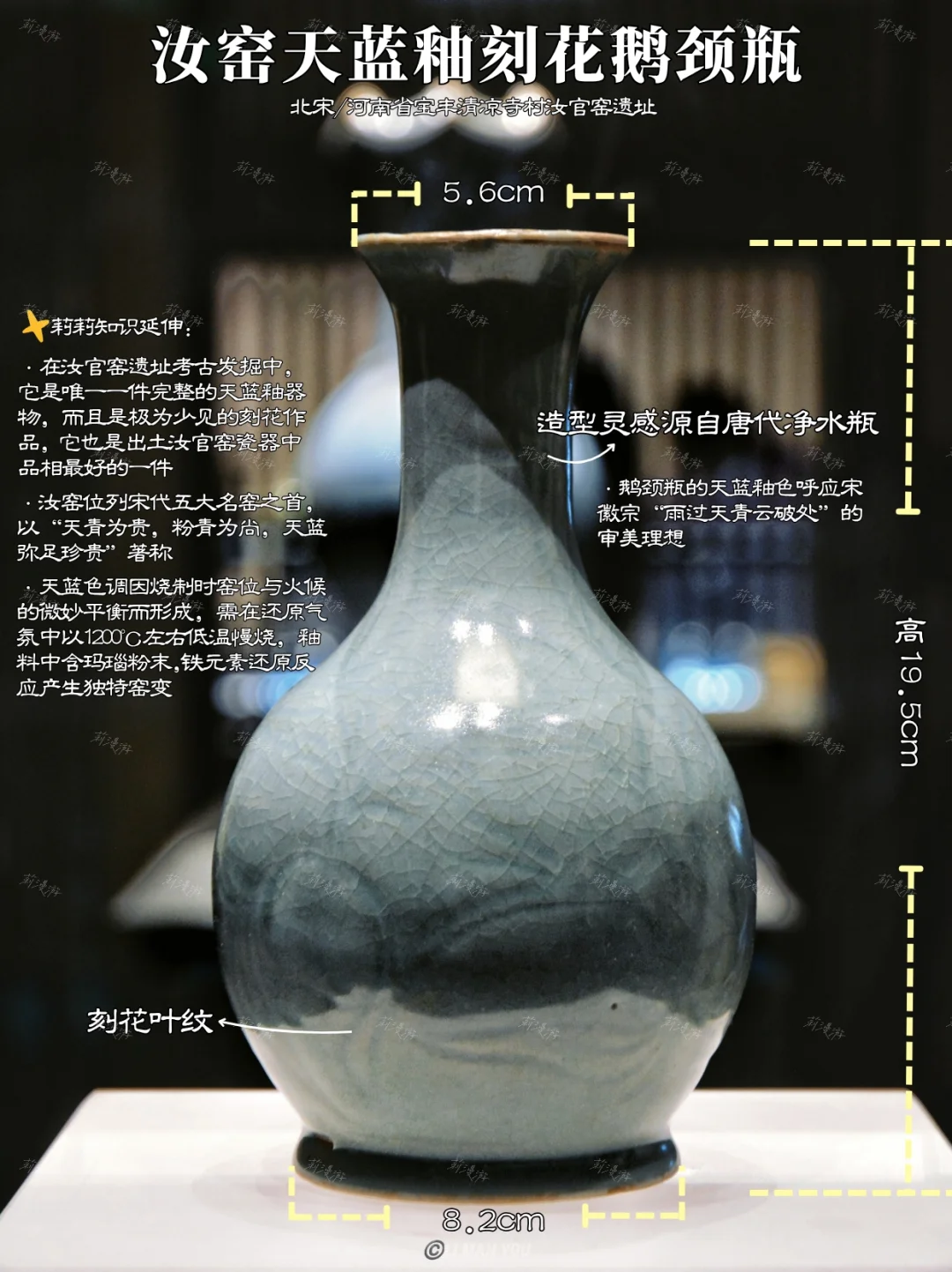 ⑧汝窑天蓝釉刻花鹅颈瓶📍3楼10展厅