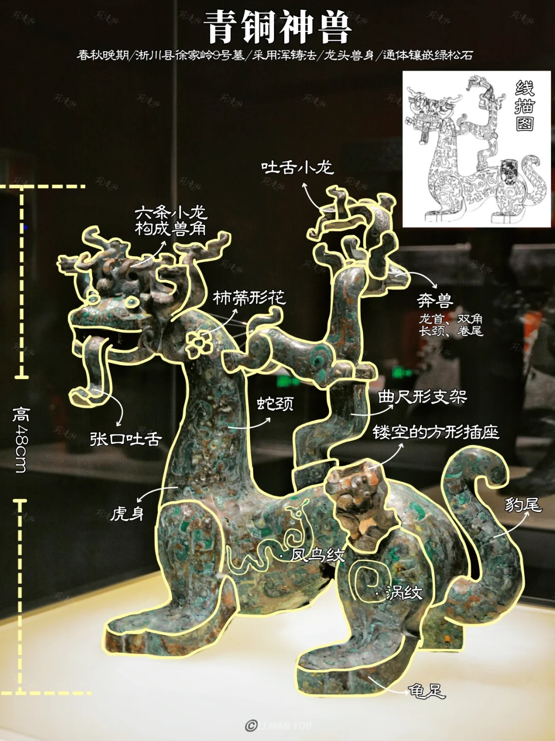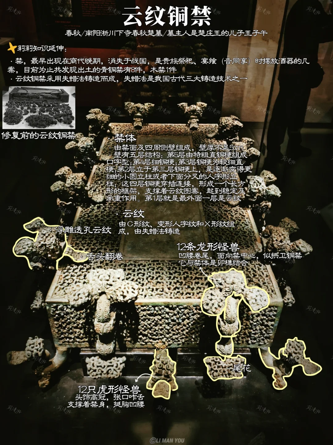 📍4楼13展厅👀云纹铜禁+王子午鼎+镂空龙纹铜俎+龙耳方壶+青铜神兽
