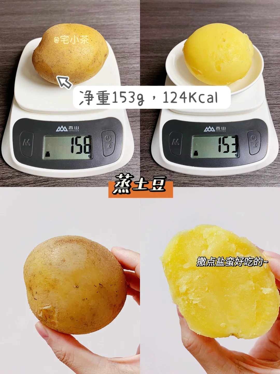 6️⃣蒸土豆:一个净重153g,124Kcal