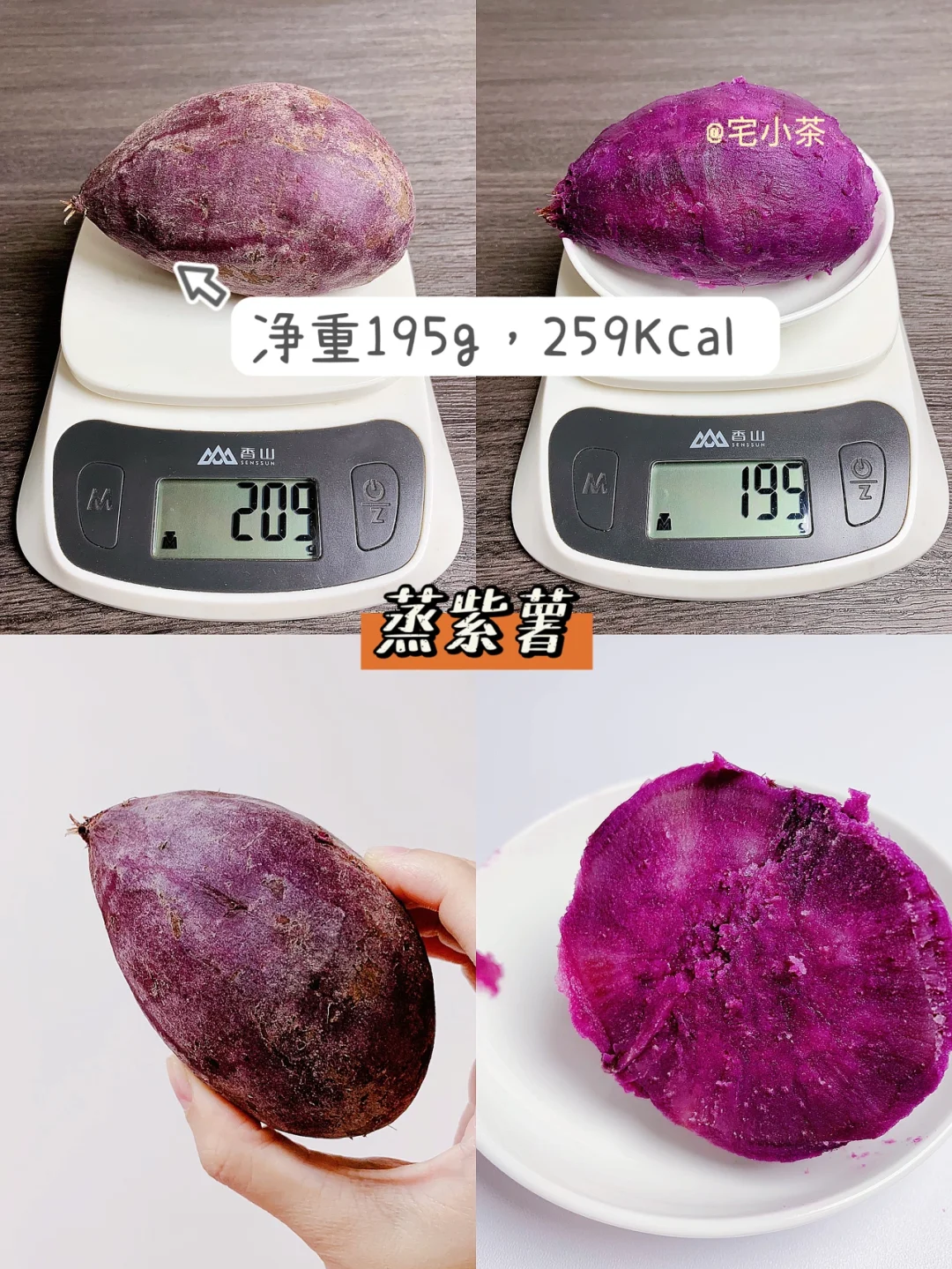 5️⃣蒸紫薯:一个净重195g,259Kcal