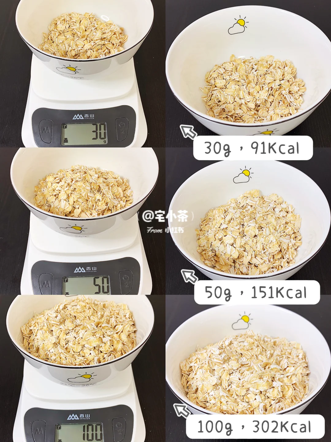 燕麦+奶粉+豆浆粉热量‼️勺/30g/50g/100g/碗
