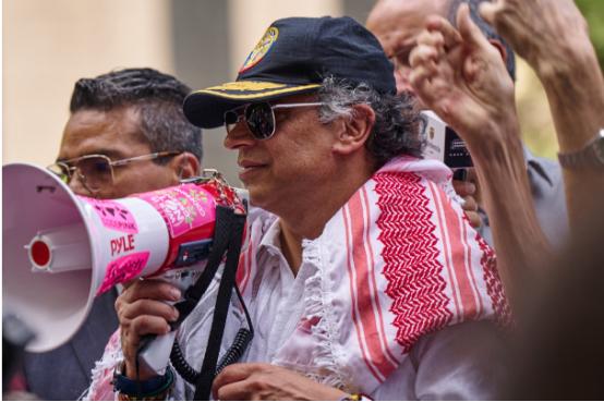 这位总统太刚! 在纽约曼哈顿的联合国总部外,哥伦比亚总统佩特罗手持喇叭向人群疾呼:美军士兵应当违抗暴君(特朗普)的命令!把枪口对准暴君,而不是人民! 这事儿发生在纽约曼哈顿的联合国总部外面,正是第 80 届联大开会的当口,到处都是各国政要和记者,哥伦比亚总统佩特罗拿着个喇叭往人群里一站,一嗓子直接把全场的注意力都拽过来了。 “美军士兵应当违抗暴君的命令!把枪口对准暴君,而不是人民!” 这话一喊出来,周围的示威人群瞬间炸了,举着的巴勒斯坦国旗都晃得更猛了,连路过的记者都赶紧举着相机往前挤,生怕漏了一个字。 这位拉美左翼领袖根本没管周围的骚动,接着用更响的声音喊出更惊人的话:“我们要组建一支超越美军的全球武装力量,解放巴勒斯坦!” 现场的欢呼声和相机快门声混在一起,硬是盖过了曼哈顿街头的车流声。 要知道这可是在美国的地盘上,离特朗普大厦没多远,敢直接骂美国现任总统是 “暴君”,还号召美军士兵抗命,放眼全球政要里,佩特罗这波操作确实够刚。 其实佩特罗敢在联合国门口喊出这么劲爆的话,不是一时脑热,背后是憋了好久的火气,更连着眼下中东的烂摊子。 当时加沙的战事都快拖到第三个年头了,巴勒斯坦总统阿巴斯刚在联大视频里说,以色列的军事行动已经造成 22 万人死伤,大多数是妇女小孩,加沙 80% 的房子和医院都被炸没了,这事儿连联合国秘书长古特雷斯都看不下去,说以色列在搞 “集体惩罚”。 就在佩特罗喊话前几天,英国、法国这些美国的老牌盟友都宣布承认巴勒斯坦国了,国际上骂美国和以色列双标的声音正浓,佩特罗这时候站出来,等于把大家憋着的话全喊了出来。 他在现场还说了段耐人寻味的话,说自己曾经在反希特勒的美军士兵墓前跪下过,那些士兵当年和全世界联手打败了法西斯,现在的年轻人也该把枪口对准 “暴君” 和 “法西斯”,而不是无辜的人民。 这话里的意思很明白,就是把特朗普和希特勒类比,暗指美国支持以色列的做法和当年的法西斯没区别。 而且这不是他第一次这么说,早在 9 月 19 日的联大演讲里,他就拿着乌克兰和巴勒斯坦比,质问西方为啥对俄乌冲突喊着 “人类团结”,对以色列占领巴勒斯坦就装看不见。 佩特罗这话一出口,美国那边的反应快得像被踩了尾巴。当天晚上 10 点多,美国国务院直接在社交媒体上宣布吊销他的签证,理由是 “敦促美军不服从命令并煽