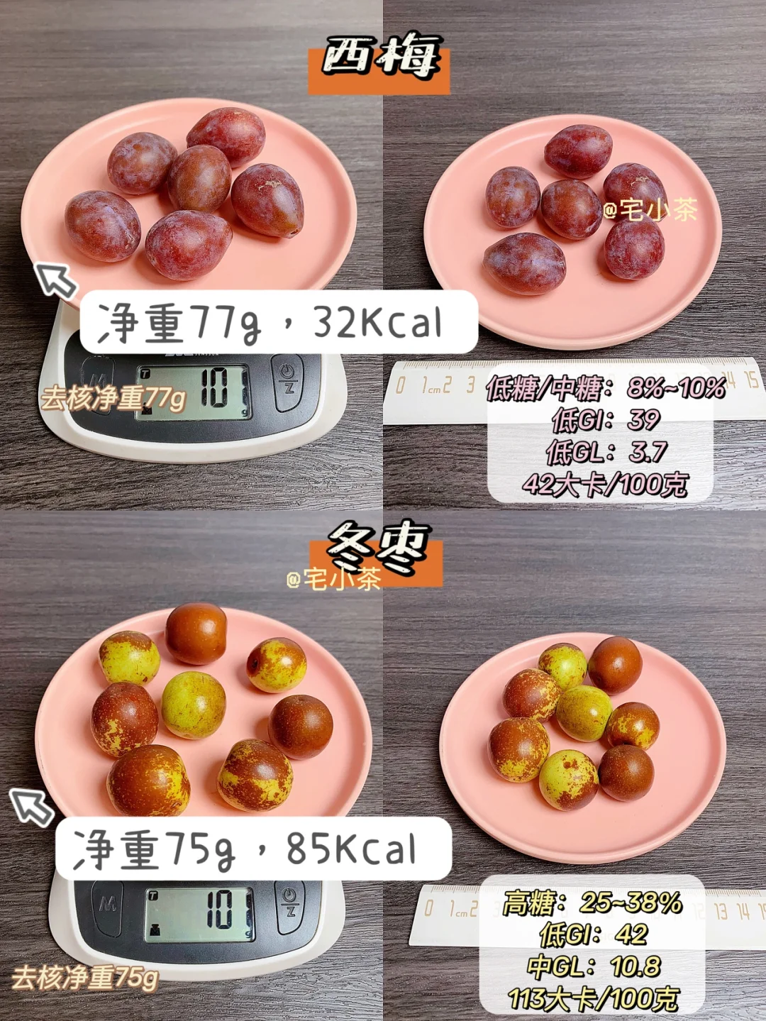 ➡️西梅:净重77g,热量32Kcal