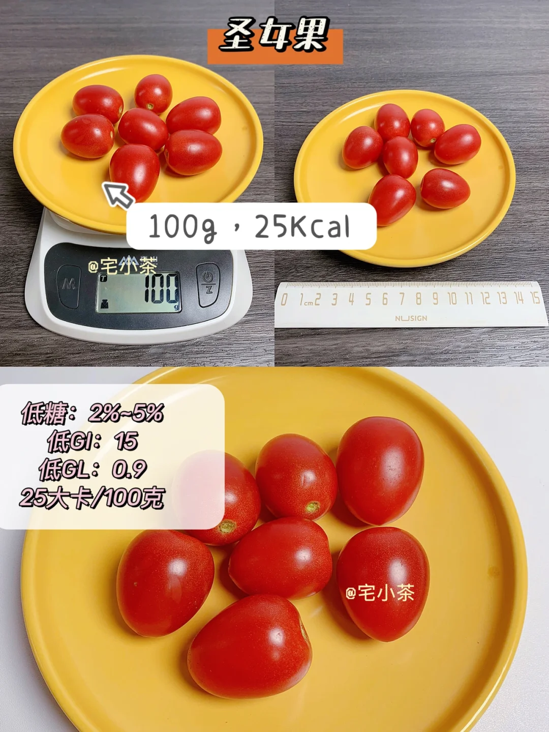 ➡️圣女果/小番茄:净重100g,热量25Kcal