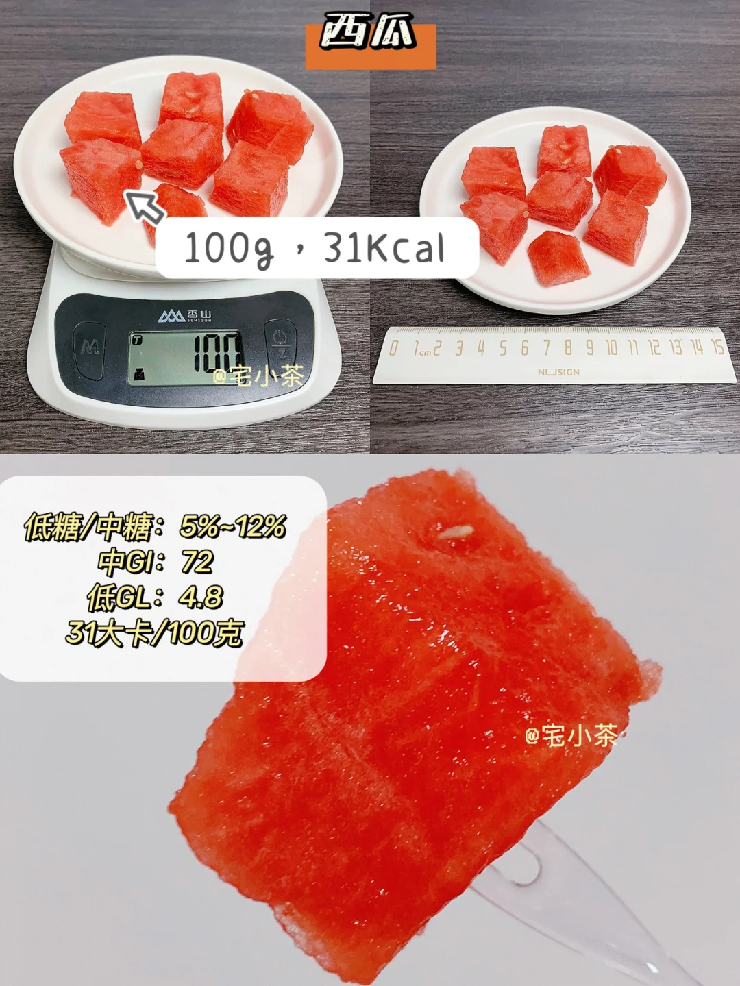 ➡️西瓜:净重100g,热量31Kcal