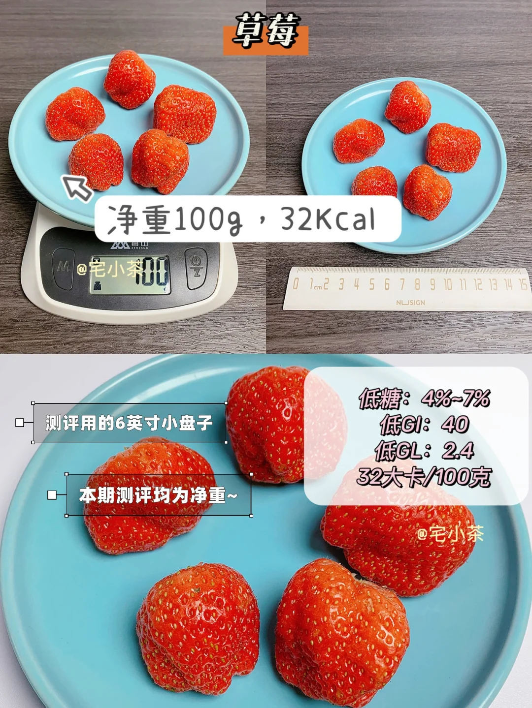 ➡️草莓:净重100g,热量32Kcal