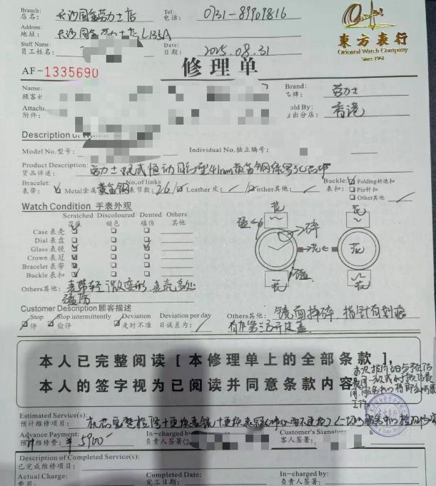 湖南男子13万的劳力士手表摔坏了镜面,去门店准备花5900元换镜面,结果门店说第