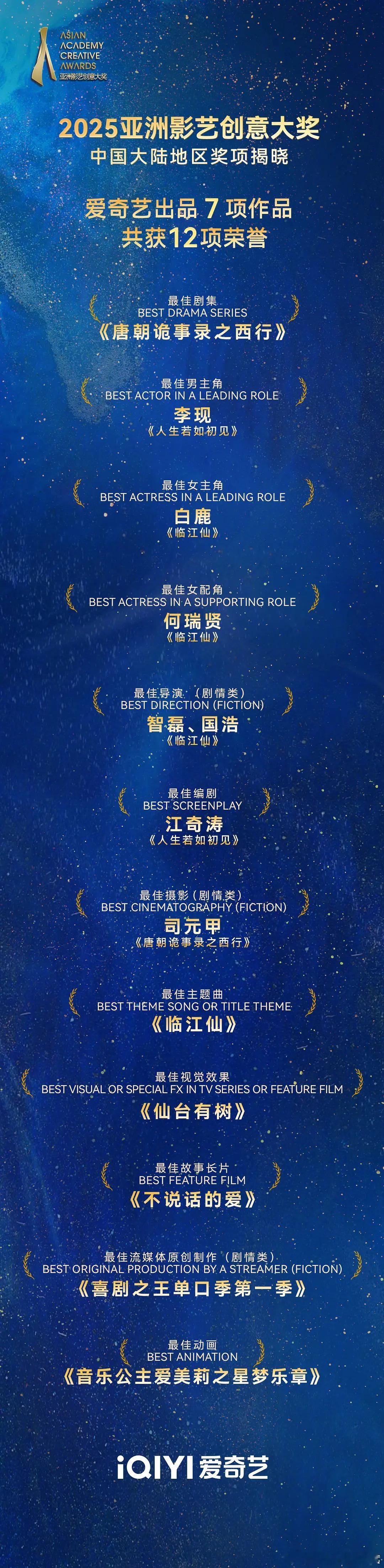 白鹿临江仙在亚洲影艺创意大奖中获四项荣誉