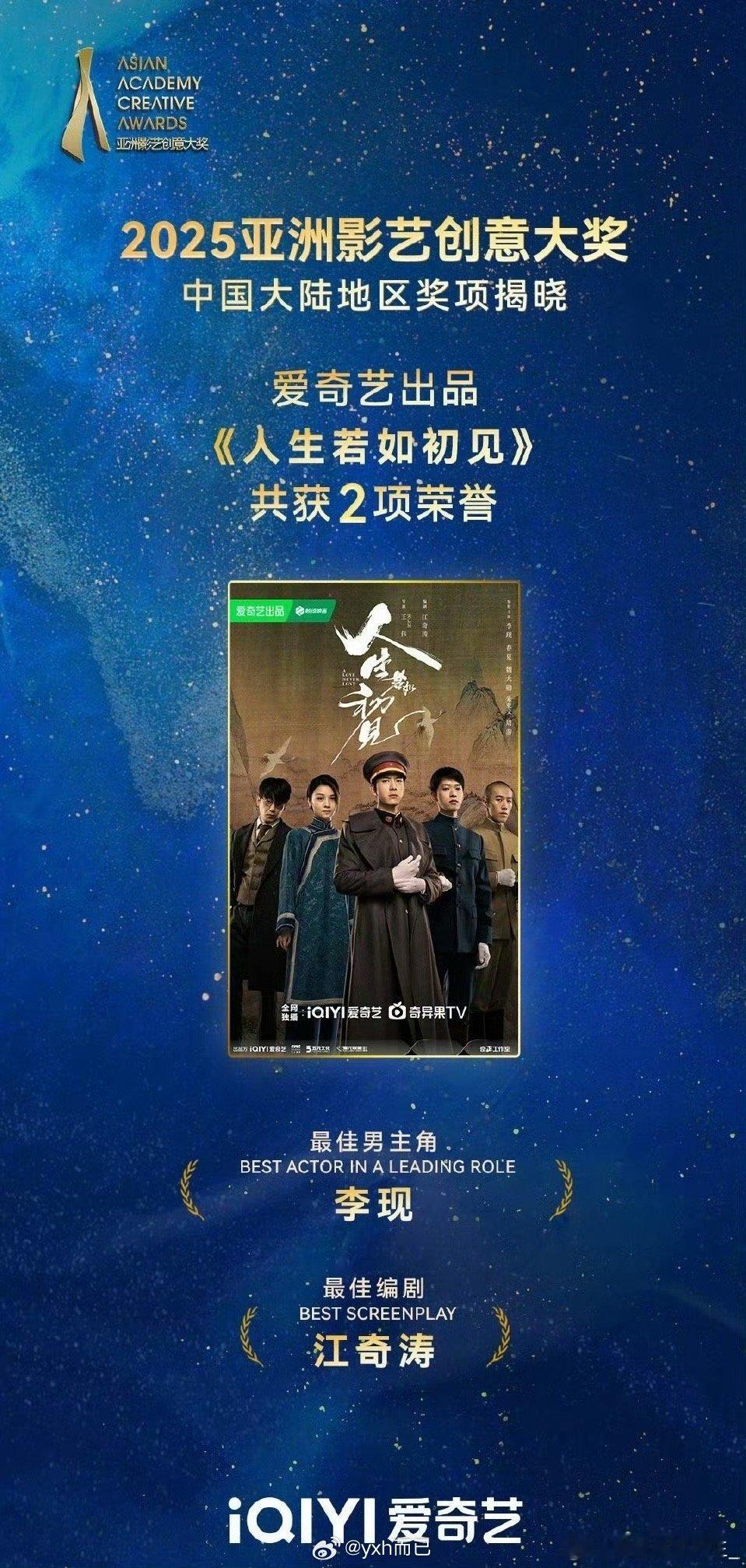 亚洲影艺创意大奖最佳男主角:李现《人生若如初见》,这个剧真的蛮不错​​​