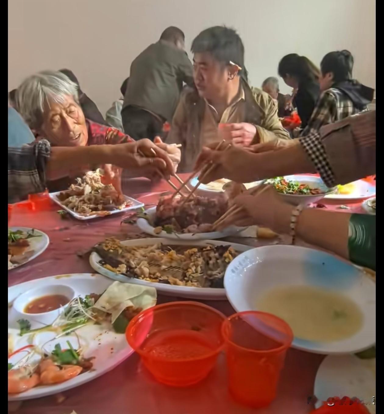 这样出来吃酒席,又被别人拍下来发到网上这丢不丢面呀?这几张照片当中可以看到菜刚一上来,马上好几双筷子就插过去了,这不是夹菜,这就是抢菜。最后老太直接把盘子直接端起来。扭菜全部拨到自己盆里。他那个盘子里面堆的就像一个垃圾盆。这几种菜混在一起,回去之后怎么吃啊? 她还只是堆了一盆,桌子上面其他盘子全部空了,想必其他人也和她一样,面前堆了一座小山。中间的那位男士可倒了霉,自己酒还没喝完,盘子全空了。照片拍摄者并没有具体的说是哪一个地方。但是网友给出了一个地图,说这个地区的人就喜欢干这事。 因为穷怕了吗,花了这么多钱来吃酒。如果不吃回去真的不合算,可是等别人全吃完了。剩下那点菜也不够几个人分的。所以呢就抢吧,你抢我也抢,如果我要碰到这样的场景,估计气的盘子一摔就要走吧。 我们皖东南这边也算不上多富裕,但是我们吃酒席,如果不是我们自己家办的,我们是绝对不会打包。 去年我表哥的儿子考上了985办酒,长辈送1000,平辈送的是500块钱礼金,吃了中饭后,表哥说酒席订多了,还多了四4桌子,让我们这些近亲晚上来吃,可是桌子上面很多人都说来不了,真的没有人贪嘴,因为肉菜太多了,吃多了对身体真没好处,而我是单身,懒得做饭,晚上就去了,因为桌子上面的菜和中午是一样,根本就没有人动多少,后来表嫂又拿了几个饭盒,把那些没有动的菜装在饭盒里面,硬塞给我两盒。 现在这个社会应该是可以吃的饱,就算是平时在农村里吃的肉菜比较少,一些新式的菜,复杂的菜没有吃过多少次。但是去了酒席大家花同样的钱至少要让大家都吃完了,离席了你再打包吧。这菜刚上桌就开始抢,真的是让人没眼看呀。