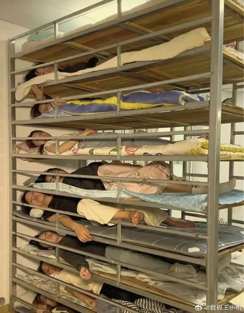 校方称9人轮流睡8张床最公平真是开了眼了,这学校干脆把宿舍做成这样↓,刚好可以睡