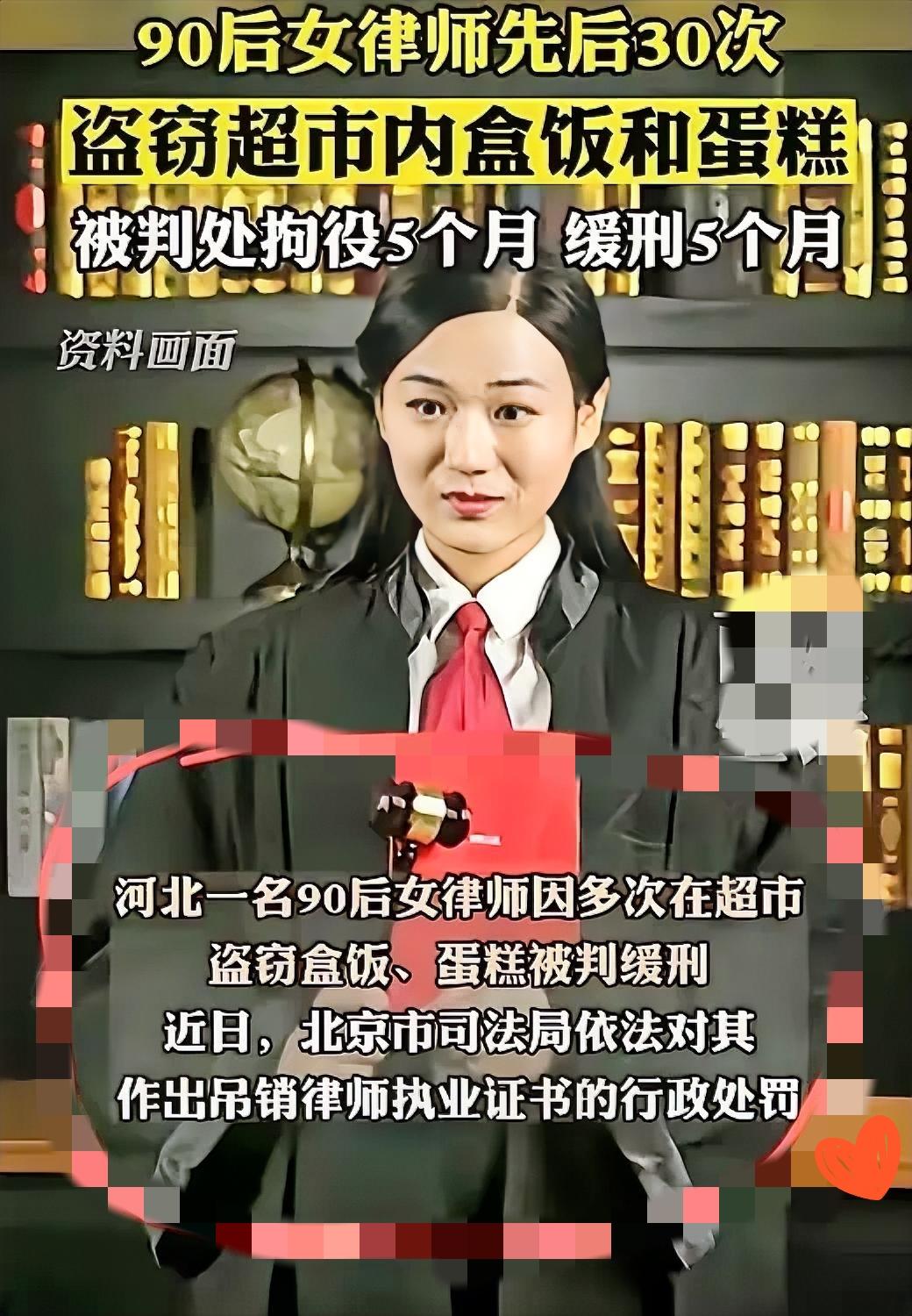 知法犯法,罪加一等! 北京一90后女律师,为了贪小便宜,用自助结账机30多次偷超市盒饭、蛋糕,加起来1800多块,最后不仅上了法庭,连律师执照都给吊销了,简直赔到家了! 真没想到,天天把法律条文挂嘴边的律师,居然栽在超市自助结账机上!北京这90后女律师刘某,明明握着“金饭碗”,偏要耍小聪明,30多次趁着自助机没人盯,要么少扫码,要么干脆不扫,就为了贪那几块几十块的盒饭、蛋糕,累计才1800多块。 她肯定觉得自己懂法,能钻空子,可超市的监控早把她的小动作拍得明明白白。被抓后她才慌了,赶紧赔钱求谅解,可哪有那么容易?法院判了拘役5个月缓刑5个月,还罚3000块,更惨的是司法局直接吊销了她的律师证,以后想靠法律吃饭都没门了。 要我说,这哪是贪小便宜,简直是拿自己的前途开玩笑!北京律师半个月工资都不止1800,她苦熬多年考的证,就毁在这点蝇头小利上。懂法的人反而知法犯法,说到底不是不懂后果,而是侥幸心理在作祟,总觉得“不会被发现”,结果把一手好牌打得稀烂。你们觉得,她这是一时糊涂,还是骨子里就存着侥幸呢?