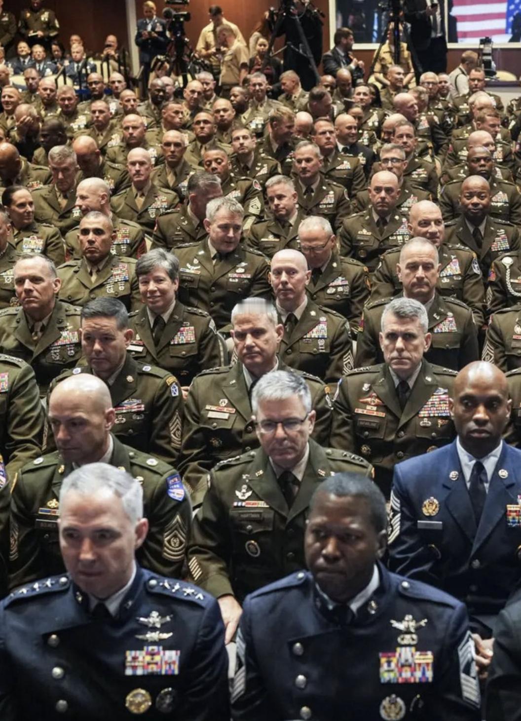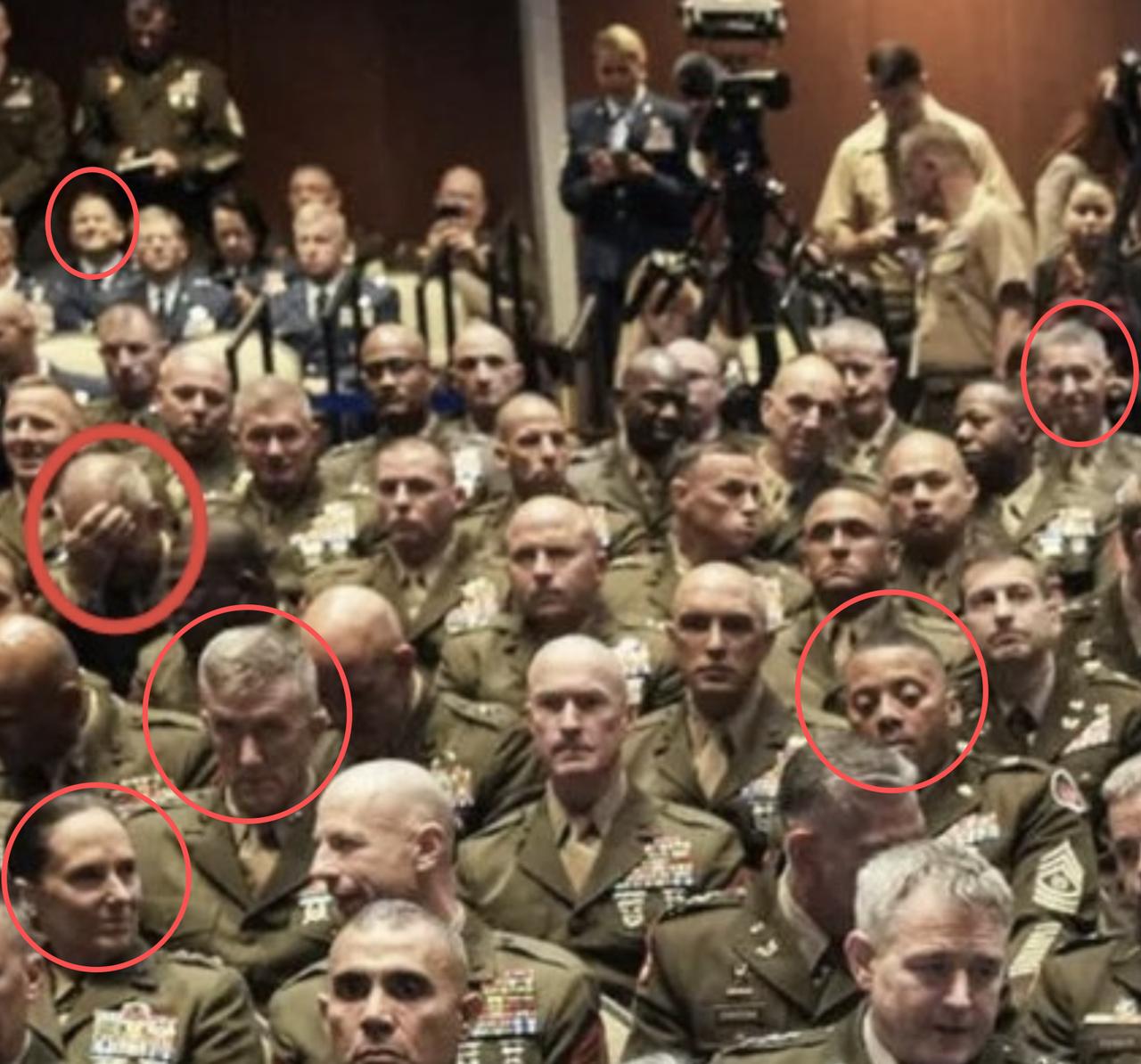 看看台下美军将领的表情,真是神态各异,有一些是哭笑不得,有一些是眼神空洞,有一些