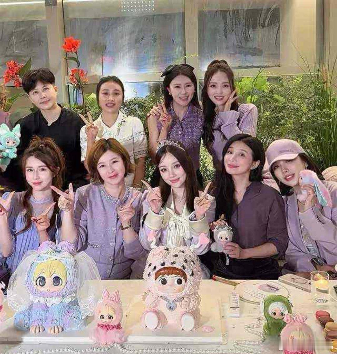 当天到场的闺蜜团阵容强大,包括董璇、甘薇以及乐华娱乐创始人杜华等人。几位闺蜜更是默契地统一穿着紫色服装,将寿星李小璐簇拥在C位,现场气氛温馨而热烈。
