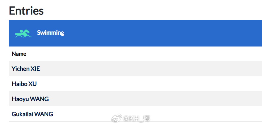 亚洲游泳锦标赛男4x100自接预赛阵容谢以忱、徐海博、王浩宇、王谷开来