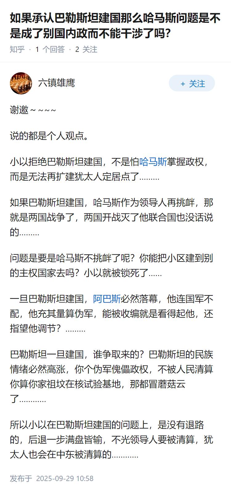 如果承认巴勒斯坦建国那么哈马斯问题是不是成了别国内政而不能干涉了吗?