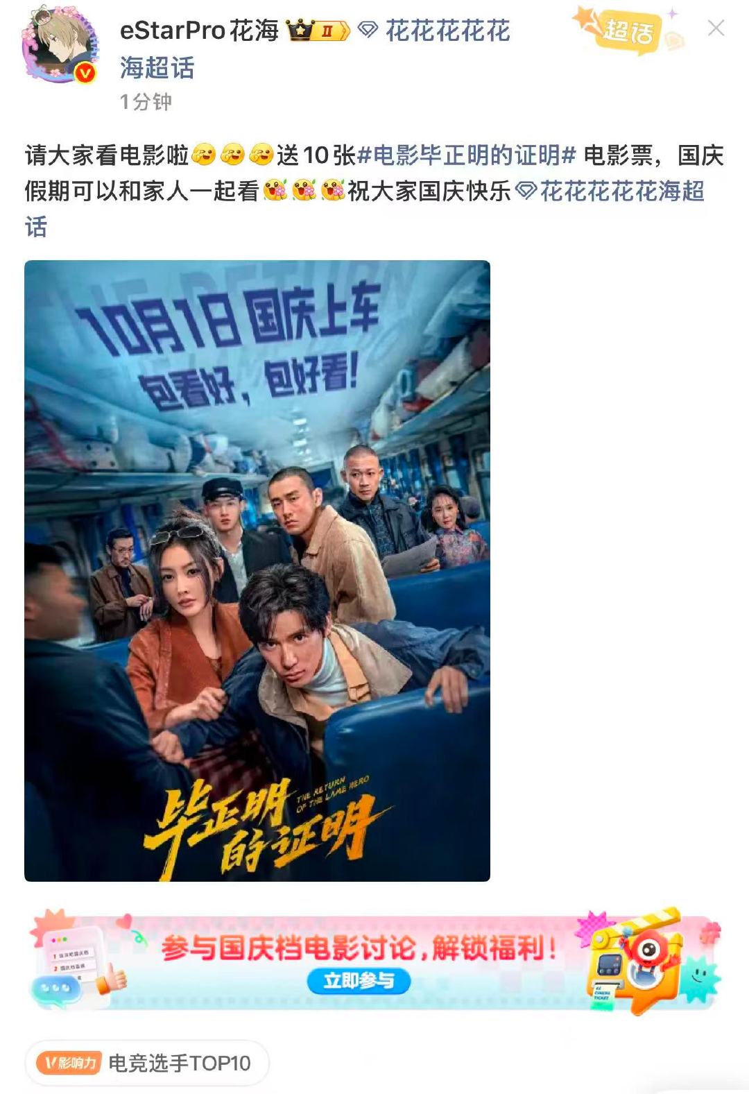 花海请粉丝看王安宇新电影花海送王安宇新电影电影票 10月1日,发微博请粉丝看王安宇新电影,“请大家看电影啦[yeah][yeah][yeah]送10张电影毕正明的证明 电影票,国庆假期可以和家人一起看[送花花][送花花][送花花]祝大家国庆快乐​”花花花花花海[超话]​​​